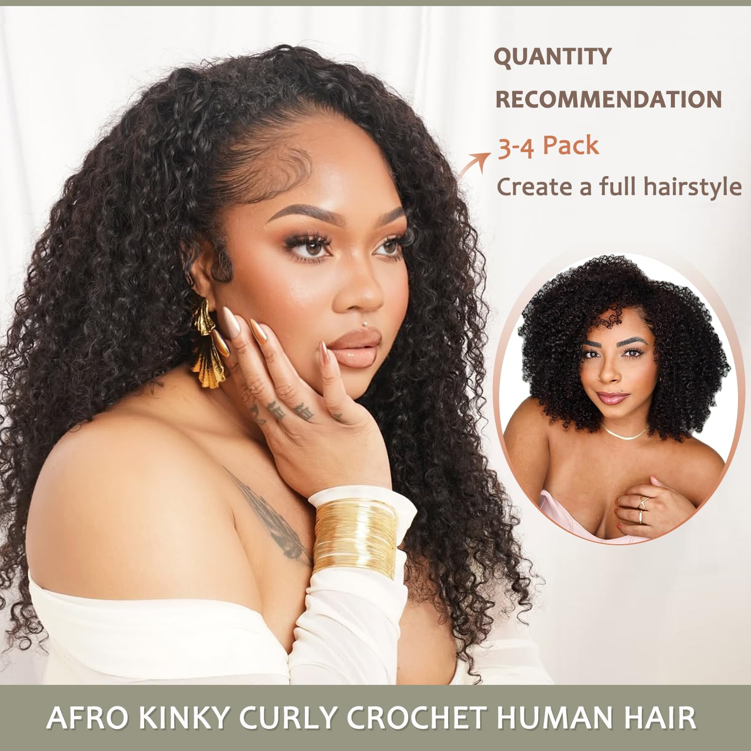 HAIR QUALITY: 100% human hair extensions designed for crochet braiding, providing natural-looking Afro kinky curly texture. lt feels tender and easy, resists tangling, has no odor, and is simple to keep up. Every strand is as liaht as a feather