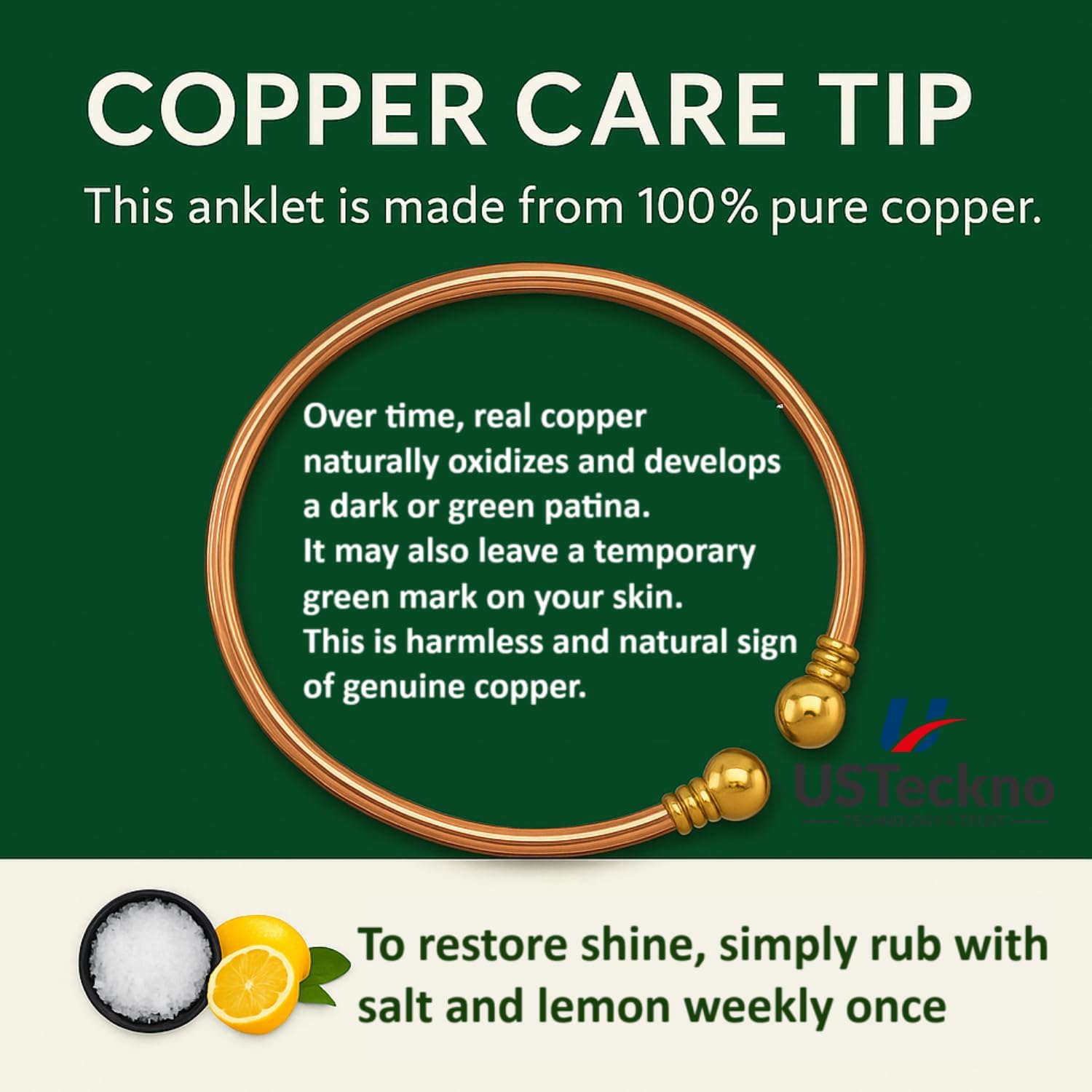 Patina (Pure Growing older): Pure, uncoated copper naturally develops a mushy greenish patina over time. This can be a regular oxidation course of that enhances the fantastic thing about the metallic and confirms its authenticity.Inexperienced Marking (Pores and skin Response): The patina might sometimes go away gentle inexperienced marks in your pores and skin. These marks are regular, innocent, and truly point out actual copper reacting together with your physique’s pure oils. They are often simply washed off with delicate cleaning soap and water.Care & Sprucing: To maintain your copper jewellery shiny and glossy, polish it as soon as every week utilizing one in all these mild cleansing strategies: – Rub with a mix of sea salt and lemon juice, then wipe clear with a mushy fabric to take away tarnish – Use a small quantity of ketchup, rub gently, rinse, and dry. The delicate acid in ketchup successfully restores copper’s heat glow.