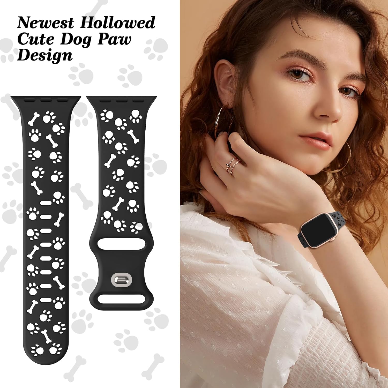 2 Pack Silicone Bands Compatible with Apple Watch 40mm 38mm 44mm 45mm 41mm 42mm 49mm Women, Hollow-Out Dog Paw Design Waterproof Sport Strap for iWatch Series 10/9/8/SE/7/6/5/4/3/2/1