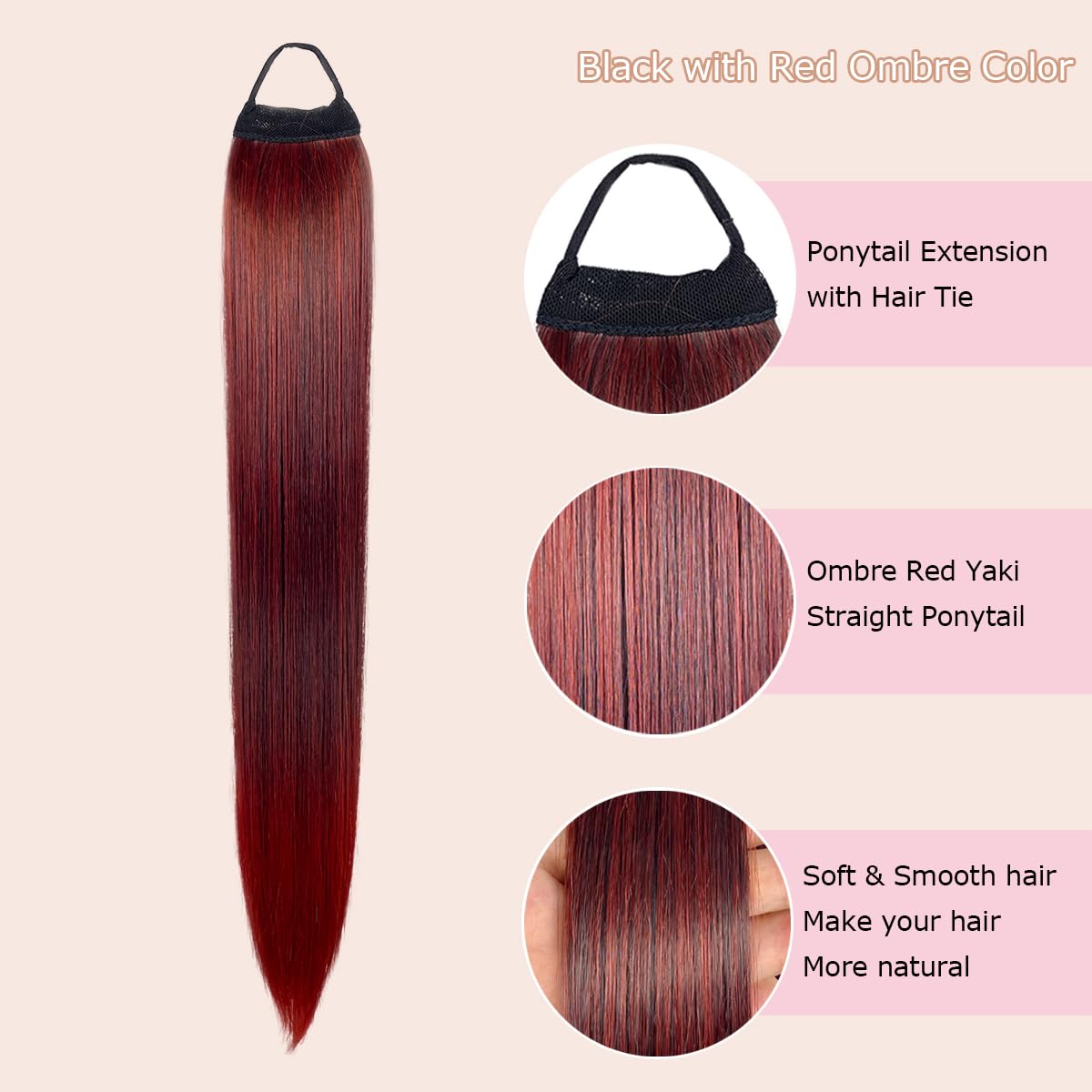 STYLE: Weight 165gram. Hair Full and thick. Comfortable hair tie yaki straight ponytail hair piece. Additional lengthy ponytail extension clip with elastic band. Black ombre purple coloration straight ponytail extension thick. Simple and quick to put on.