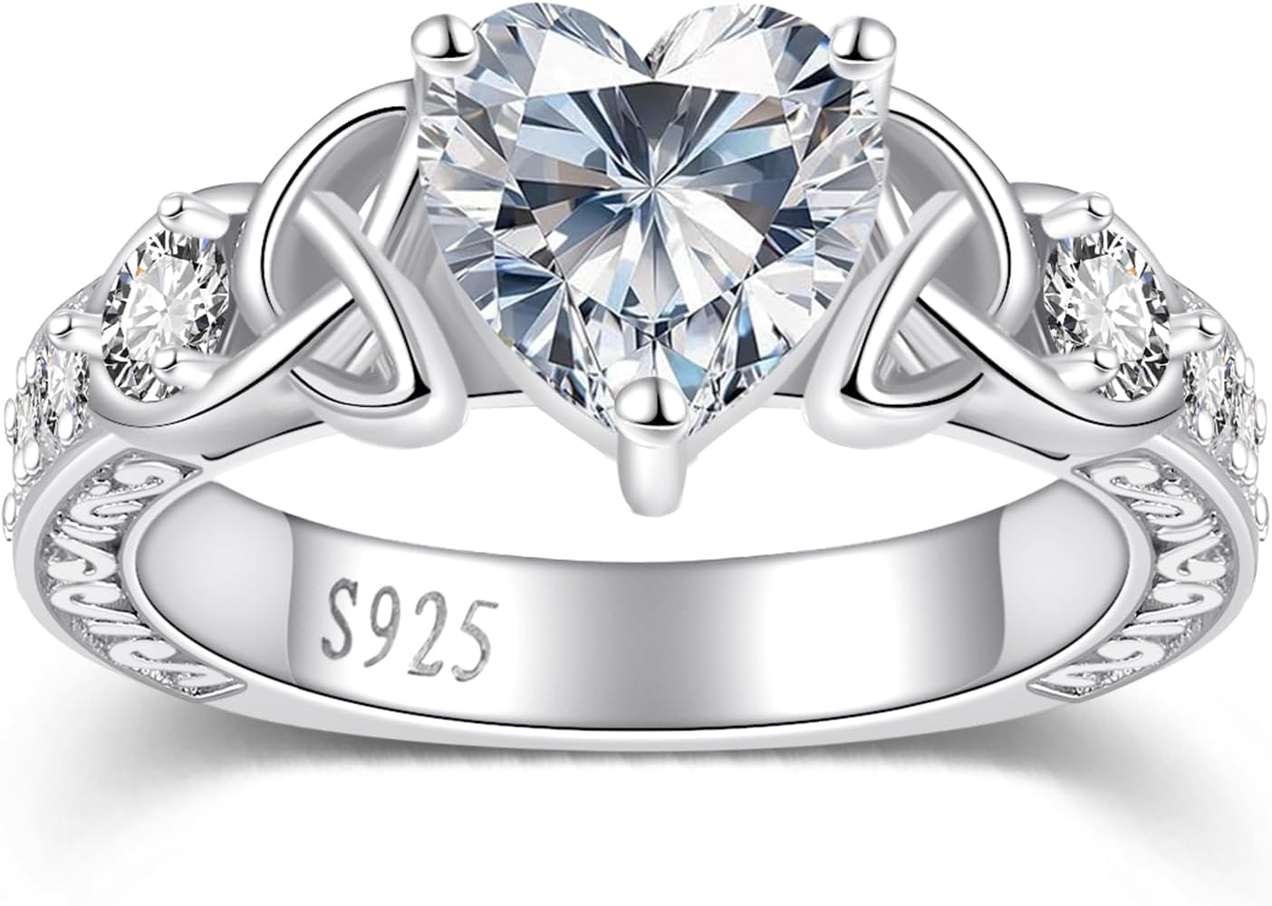 2Ct Moissanite Engagement Rings for Women D Color VVS1 14K Gold Plated S925 Sterling Silver Celtic Womens Heart Shape Wedding Promise Ring Bands Anniversary Birthday Jewelry Gifts Size 5-9
