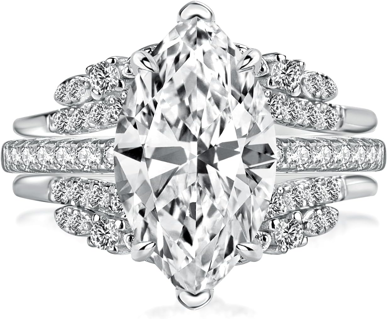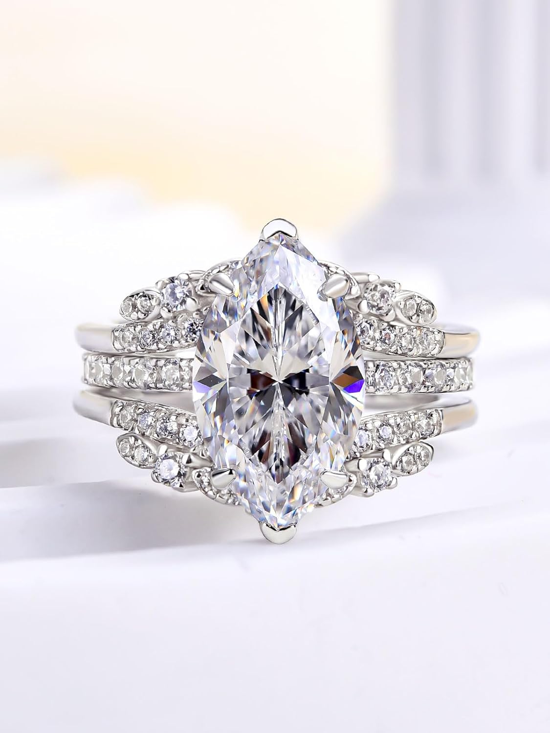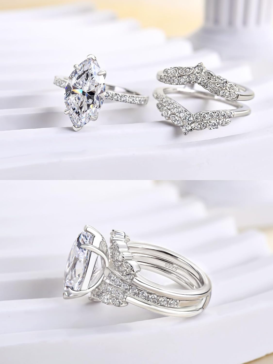 8x14mm elongated marquise minimize engagement ring with nested marriage ceremony band,showcase classic allure.
