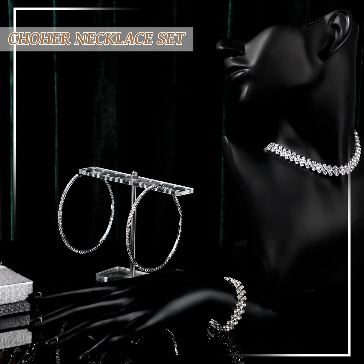 Bracelet: 6.3″/ Necklace: 13″+5″/ Earrings: 3.15″ Materials: Alloy + rhinestone Shade: Silver