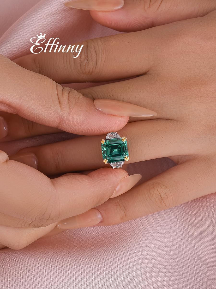 Effinny 4.5ct Asscher Lower Emerald Engagement Ring Actual 5A Grade Cubic Zirconia Simulated Diamond