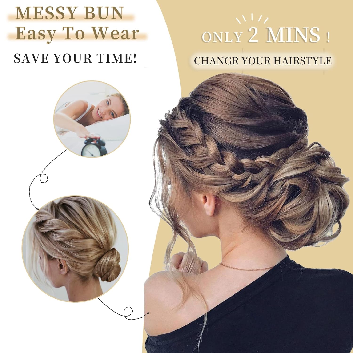 【High quality Bun Hair Items】4 Piece messy bun hair piece are made out of warmth resistant artificial fibres that look identical to your personal hair, gentle and tender. Blends fantastically with your personal hair when worn, giving your hair a thick and full look