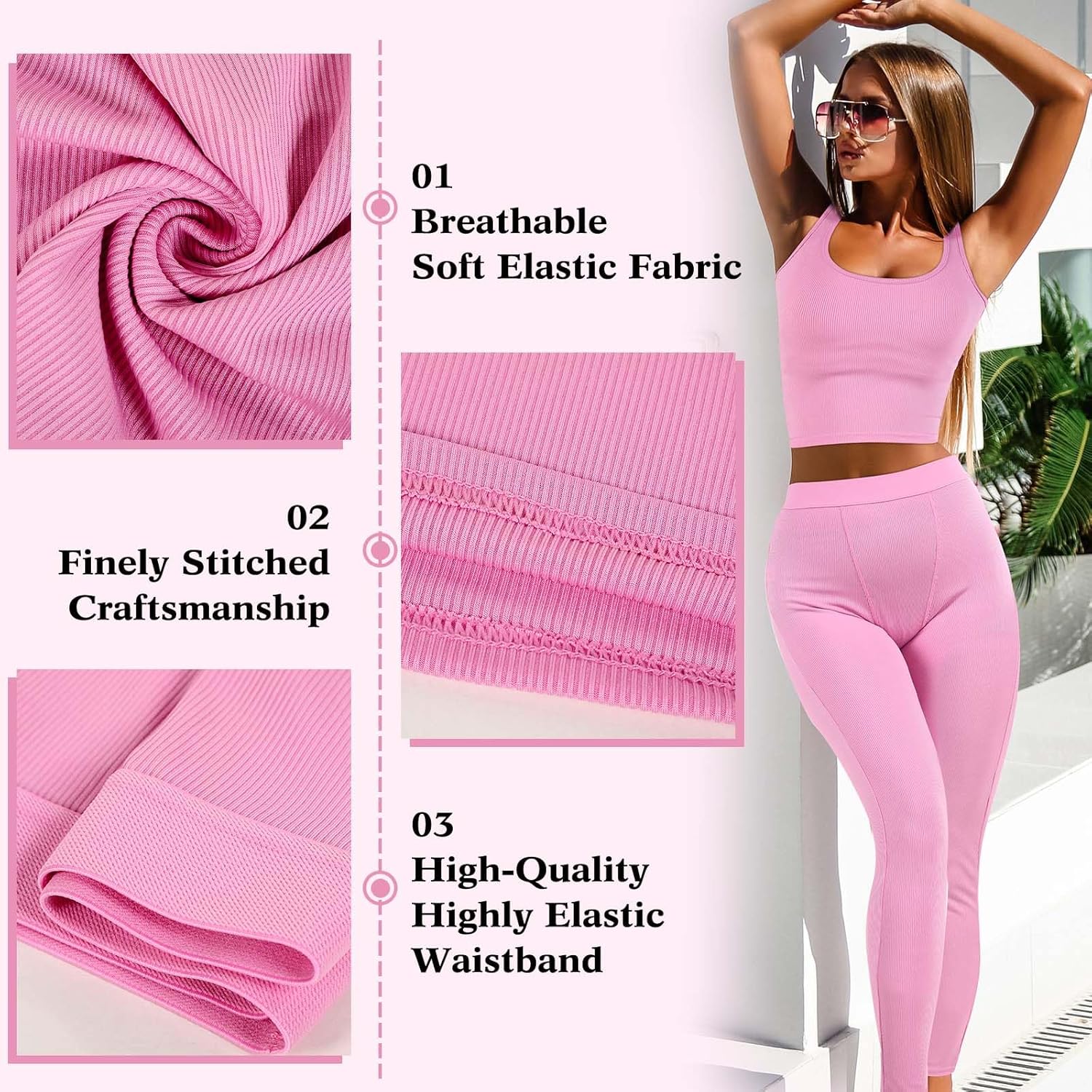 4 Pieces Workout Sets for Women, Ladies Casual Exercise Outfits Elastic Legging Fitted T Shirt Crop Tank Top Shorts