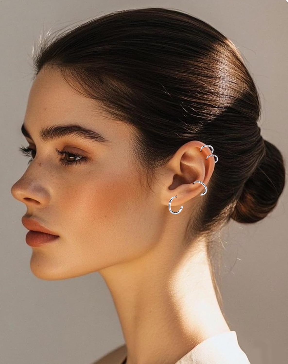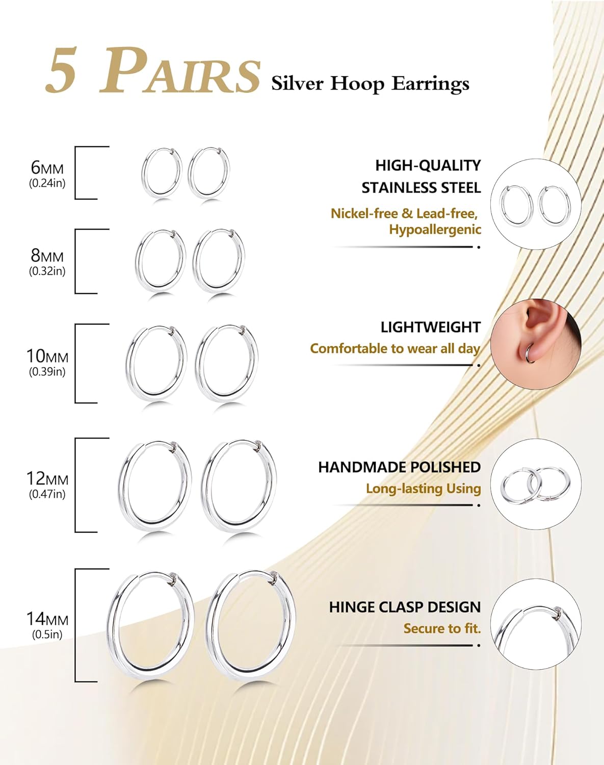 5 Pairs Silver Stainless Metal Hoop Earrings fo Girls
