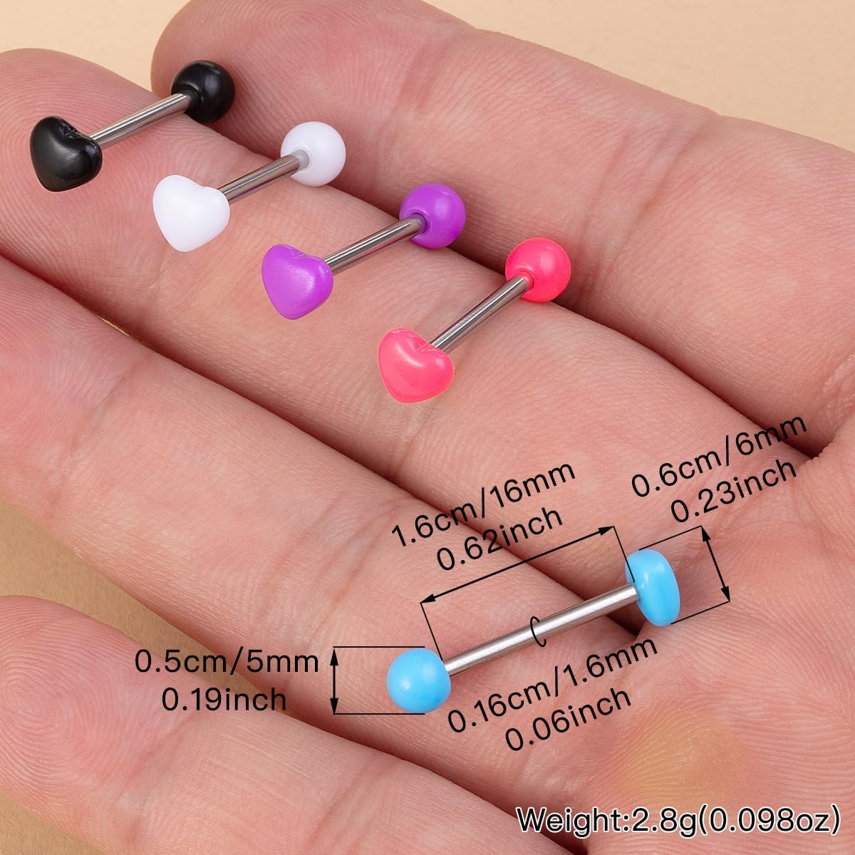 Elevate your piercing recreation with the Niaspi 5Pcs Acrylic Coronary heart Star Moon Tongue Rings set. This fashionable assortment options 14G stainless-steel straight barbells in a 5/8″ size, good for tongue piercings. The acrylic adornments are available in eye-catching coronary heart, star, and moon shapes, permitting you to modify up your look effortlessly. Crafted with premium supplies, these tongue rings supply a cushty and safe match. Specific your individuality and make a daring assertion with this versatile set. Whether or not you are a piercing fanatic or simply beginning your journey, these tongue rings are vital accent.