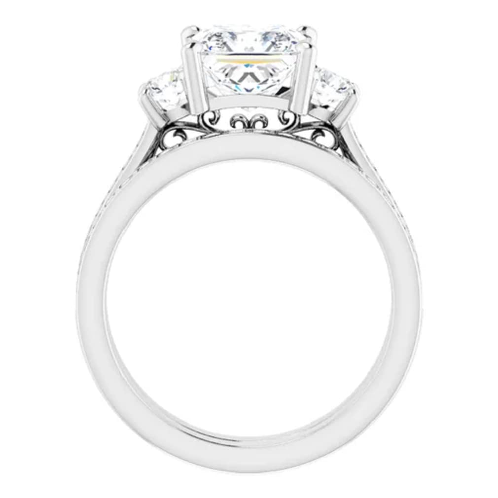 Predominant Stone: Moissanite, Predominant Stone form: Princess Good Reduce, Predominant Stone Coloration: Colorless, Predominant Stone Readability: VVS1, Predominant Stone Luster: Glorious, Predominant Stone Weight: 3 CT ( 8 mm ) Approx, Aspect Stone: Spherical Good Reduce, Aspect Stone Coloration/Readability: White/VVS1, Aspect Stone Weight: 0.30 CT Approx, *** Description of Band:- Stone Form: Spherical Good Reduce, Luster: Glorious, Stone Coloration/Readability: White/VVS1, Stone Weight: 0.26 CT Approx, Sort: Handmade Ring Set, Setting Sort: Prong Setting
