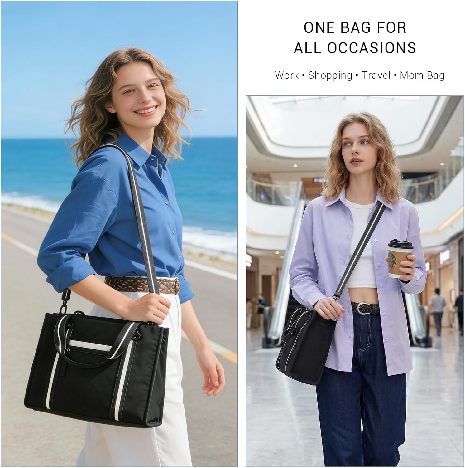 ACUARIO Tote Bag for Women, Work Tote Handbag with Pockets, Shoulder Bag for Office Business Travel Daily Commute