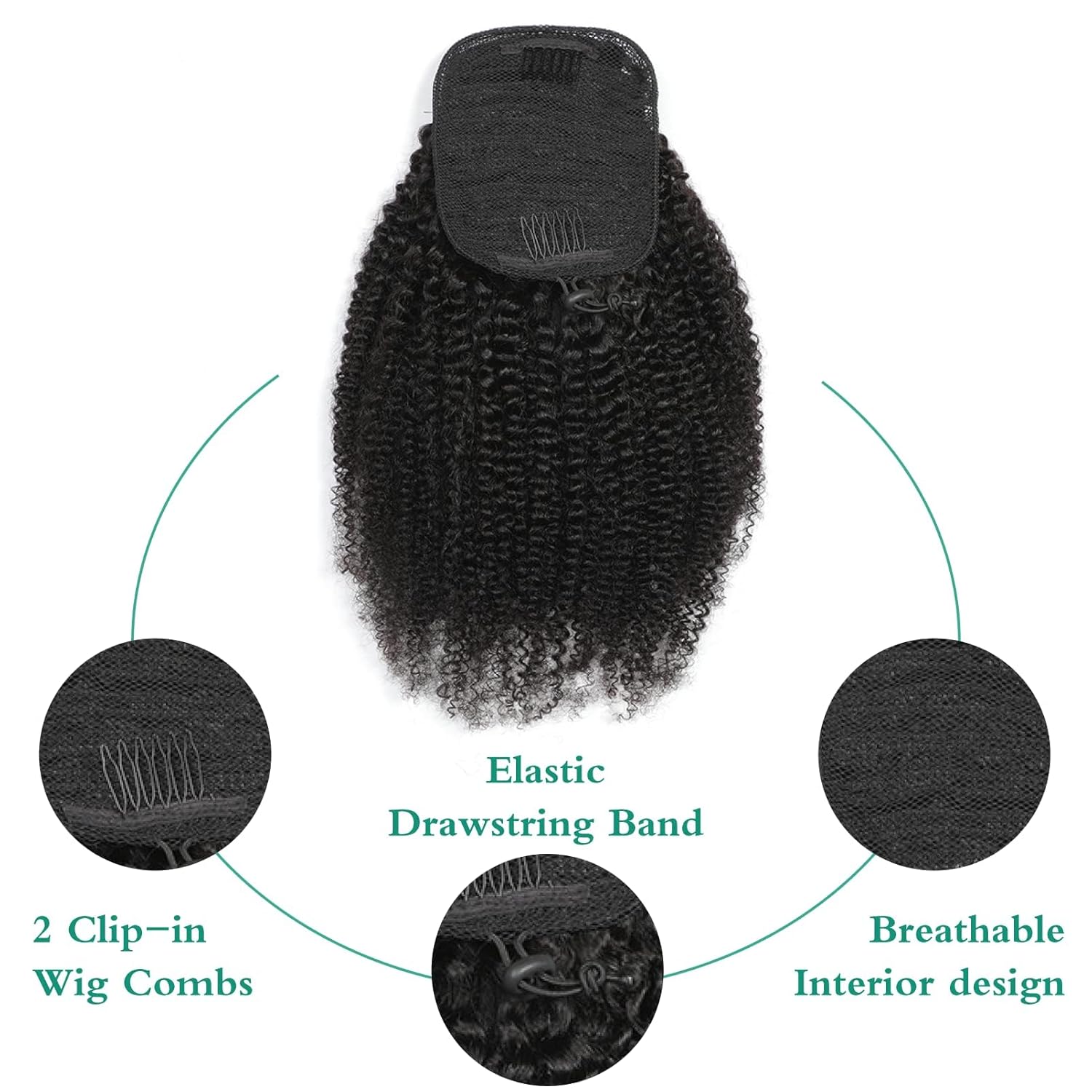 Drawstring ponytail for black girls,4C Afro kinky curly ponytail with 2 clips and an adjustable elastic band, very agency.