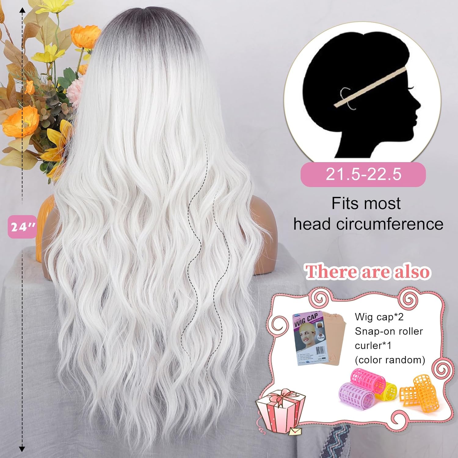 【Beautiful White & Candy Type】Searching for a natural-looking white wig with a classy wavy design? Look no additional than this lengthy wavy wig with bangs, which is without doubt one of the hottest types within the wig class. White represents purity and makes you look extra elegant. The darkish hair roots make the white wigs extra modern, natural-looking wavy type, and candy bangs that body the face superbly and make you look extra pure.