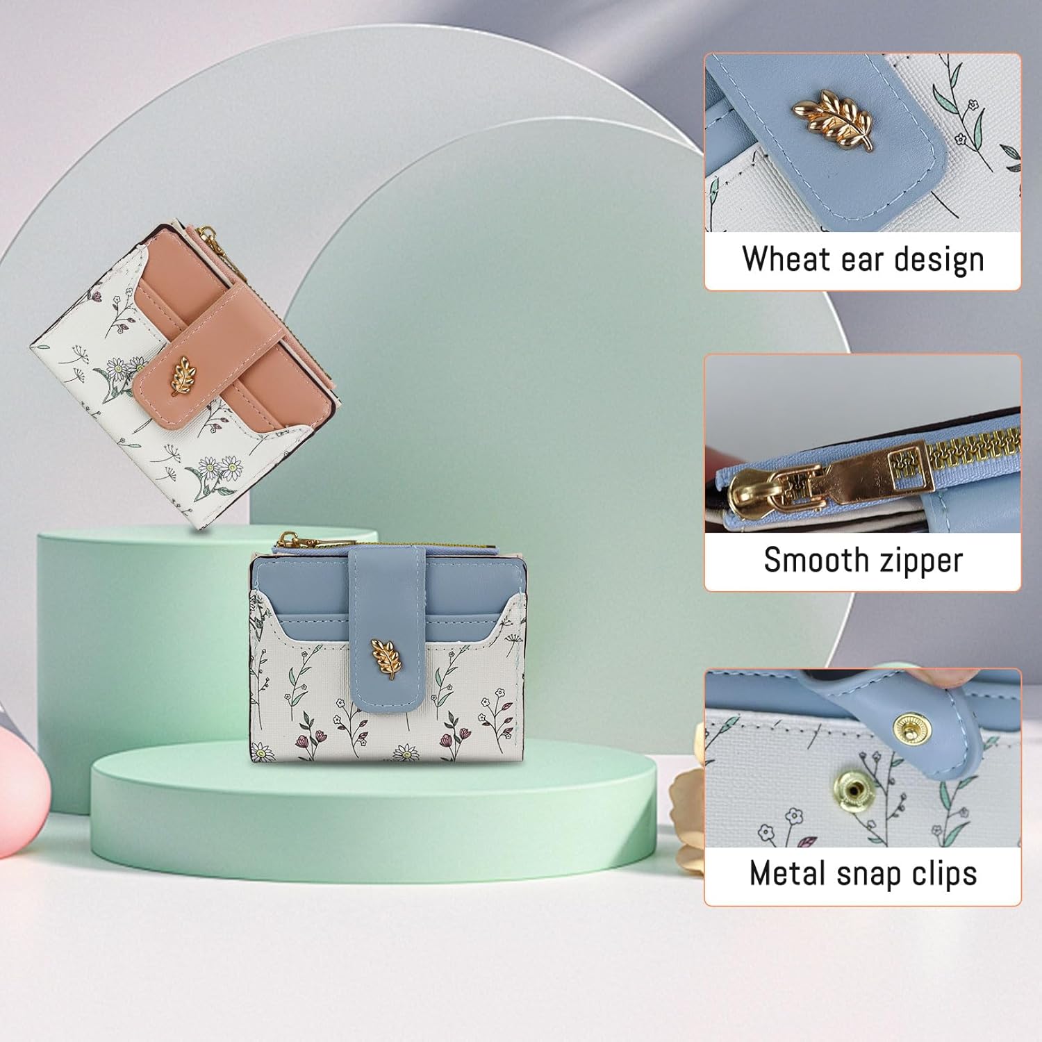 Beautiful StitchingWheat Ear DesignSmooth ZipperFloral Sample