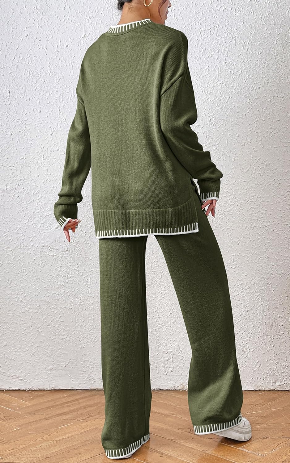 2 Piece Outfits Sweater Units Lounge Lengthy Sleeve Knit Tops Broad Leg Pants