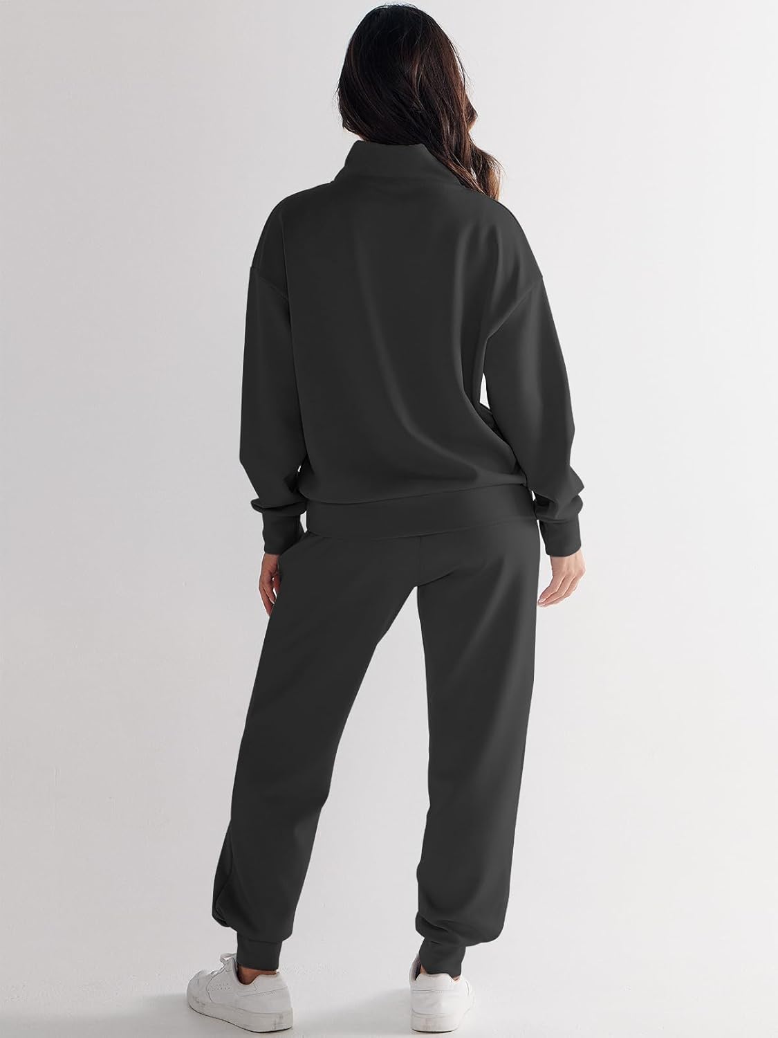 ANRABESS Womens 2 Piece Outfits Half Zip Cropped Lengthy Sleeve Sweatshirt Jogger Sweatpants Lounge Sweatsuit Set