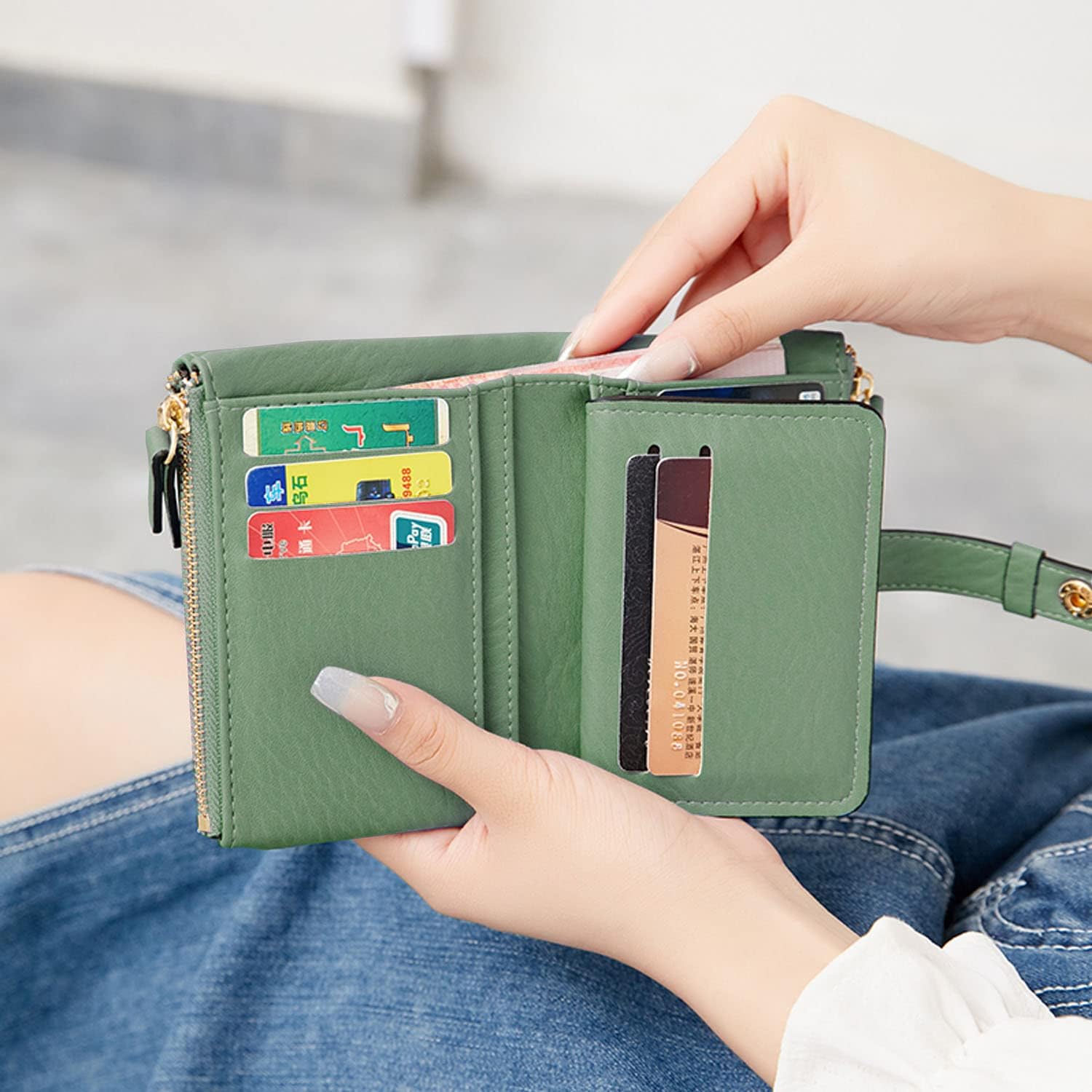 AOXONEL Women’s Wallets Leather Wallets for Women Rfid Small Ladies Wallet Billfolds for Women,Trifold Mini Wallets for Women with Double Zipper Coin Pocket (Green)