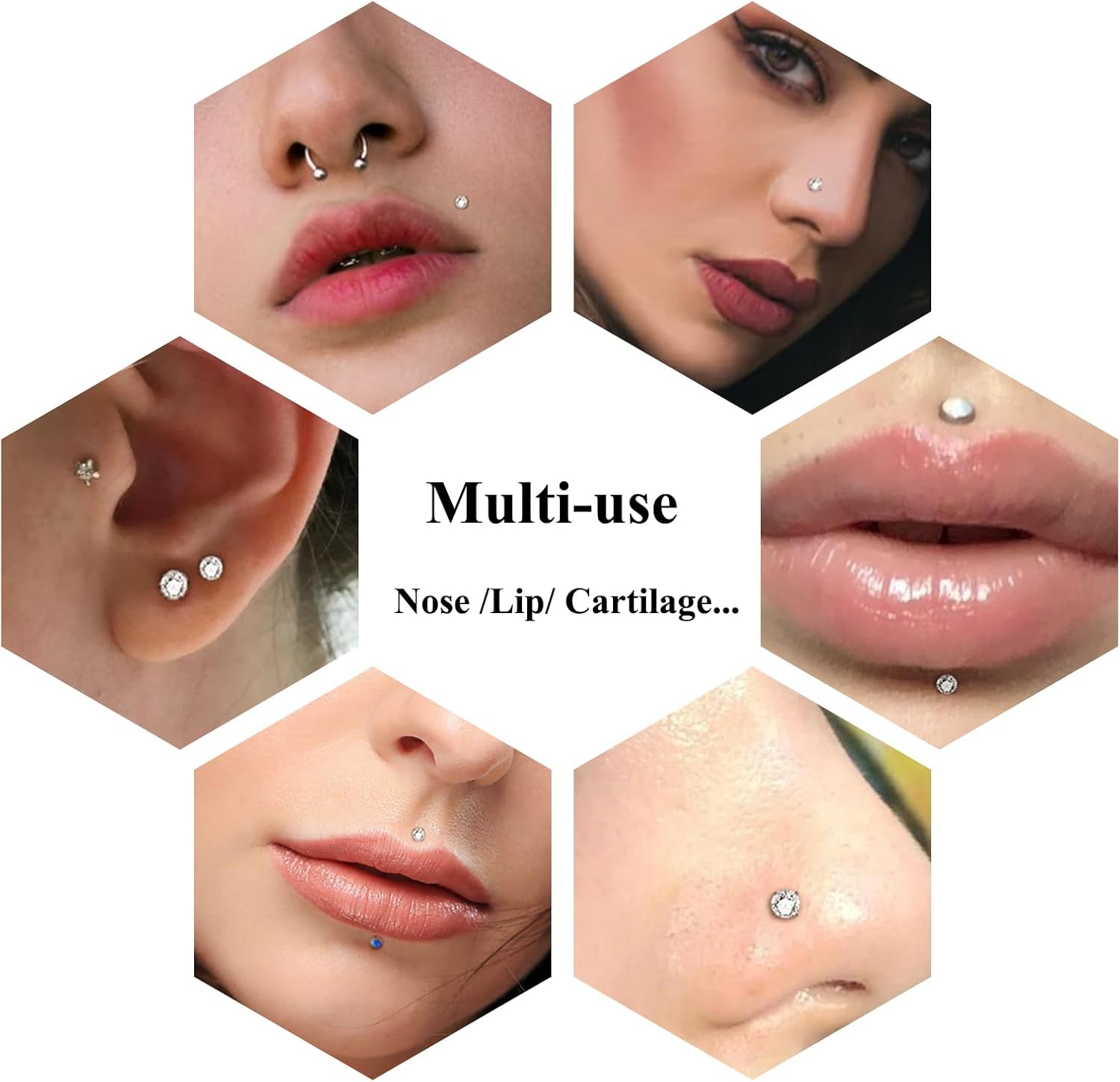 The push in nostril rings studs might be use on nostril, lip, monroe, medusa, labret, aspect labret, ashley, cartilage, helix, tragus, nostril, madonna