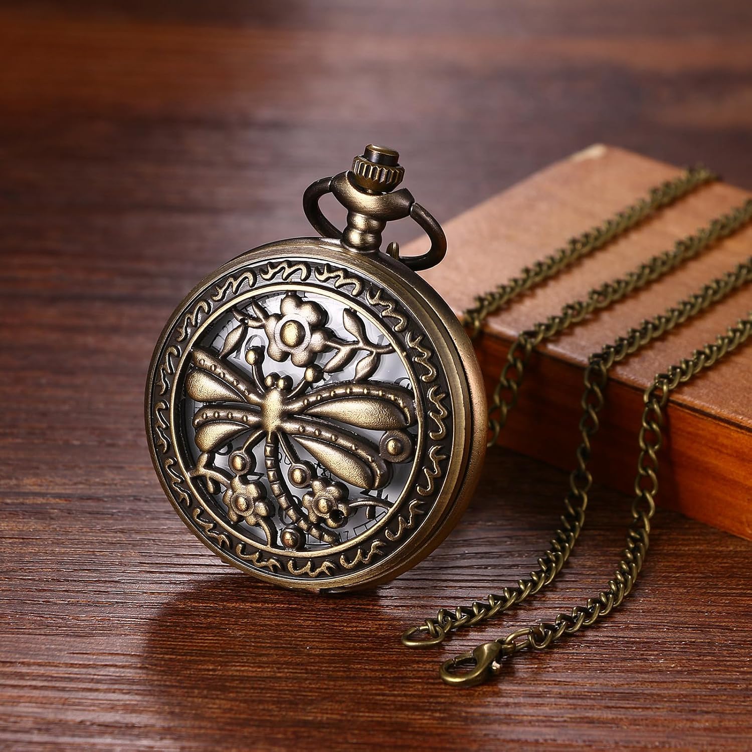 Avaner Hole Dragonfly Pocket Watches: Classic Bronze Analog Quartz Pocket Look ahead to Males and Ladies