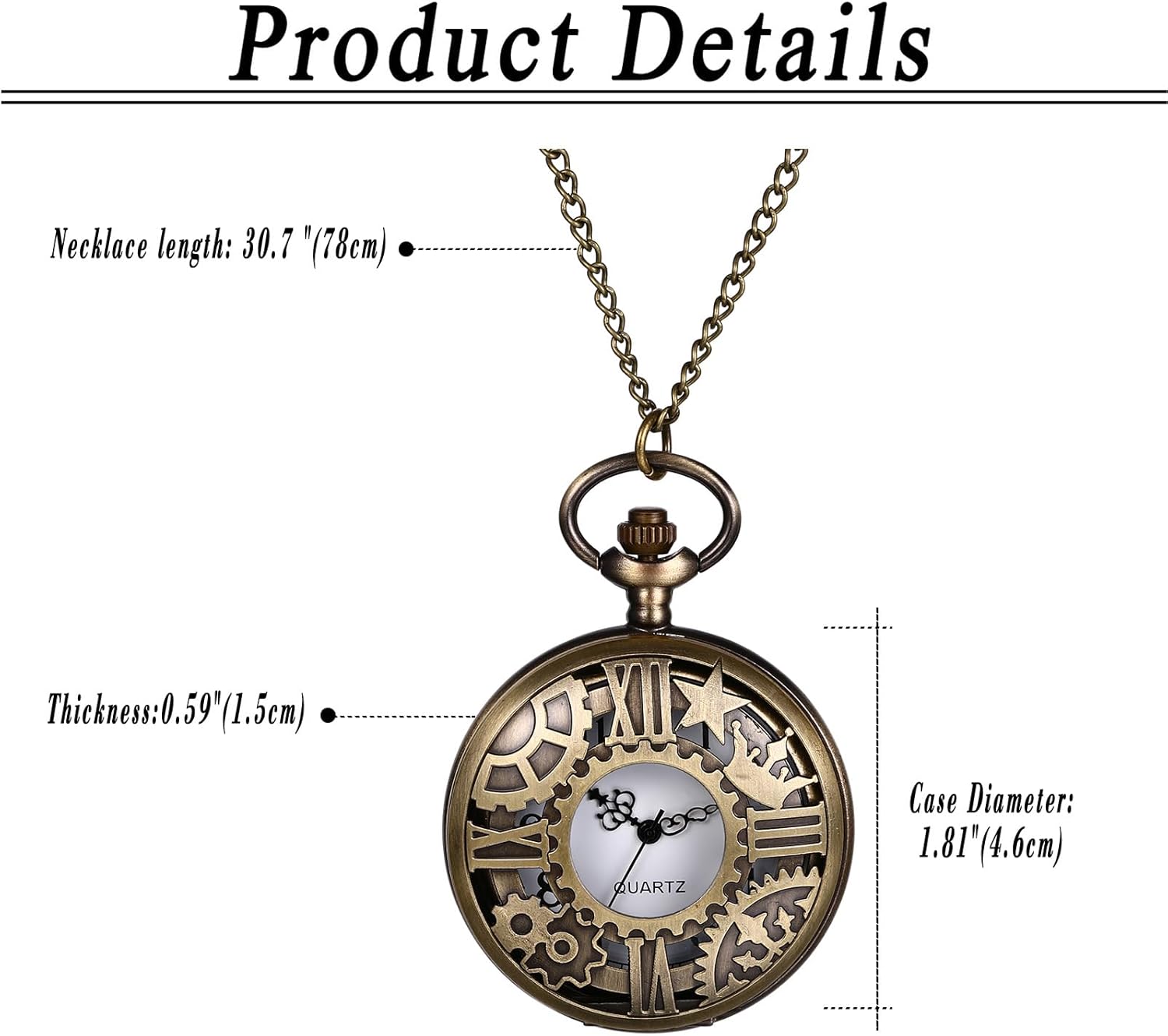 Avaner Girls’s Quartz Pocket Watches: Half Hunter Bronze Arabic Numeral Pocket Watches with Chain