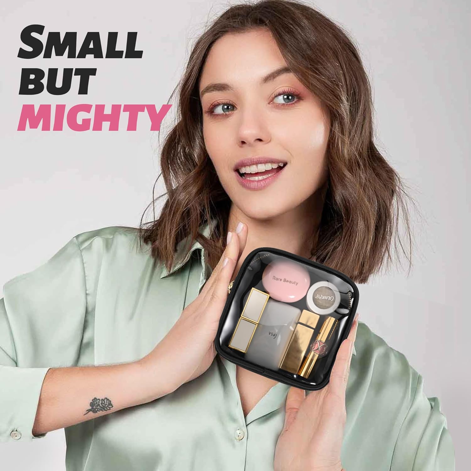 COMPACT & PORTABLE DESIGN – Measuring 5.2 * 5.2 * 2 inches, this mini make-up bag is right for journey, becoming simply into any purse or journey make-up bag. This small, clear beauty bag retains your necessities—make-up, skincare, lipstick, or sunscreen—organized and accessible. Versatile sufficient to function a beauty journey bag, make-up brush bag, or journey organizer