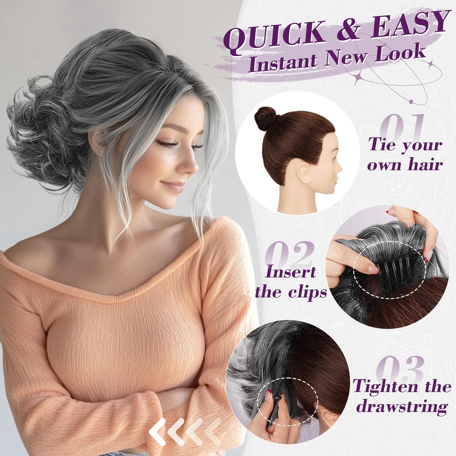 Basic Put on: Tie hair right into a bun, insert a comb clip into the bun and tighten the string to safe.Particular put on: Take away the comb clip, safe the highest of the ponytail with a number of pins, tighten and safe the drawstring.