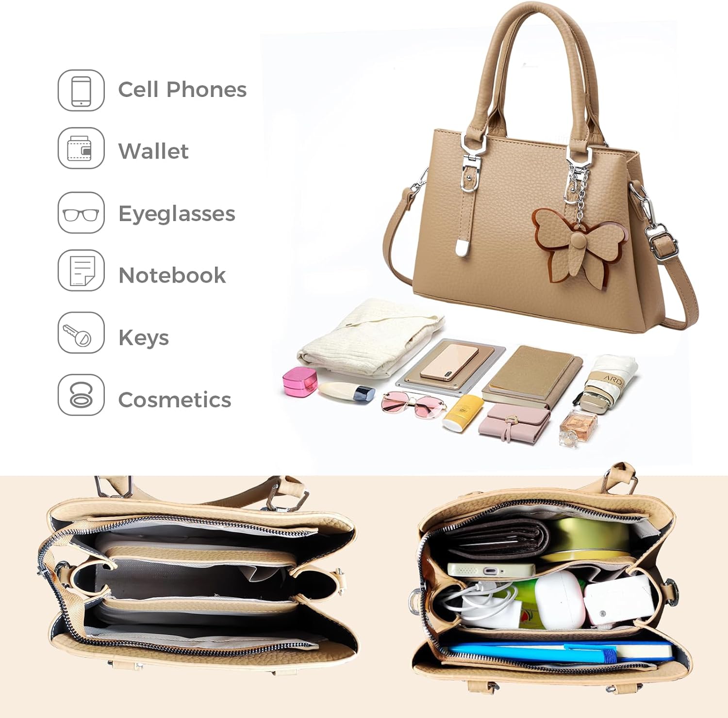 On the practice, on the bus, on the highway, we are able to normally see girl carrying a number of baggage. One for private gadgets, one for workplace gadgets, possibly one for others. Then we hope to design baggage which is stylish however operate, let ladies put all their necessities in a single bag.