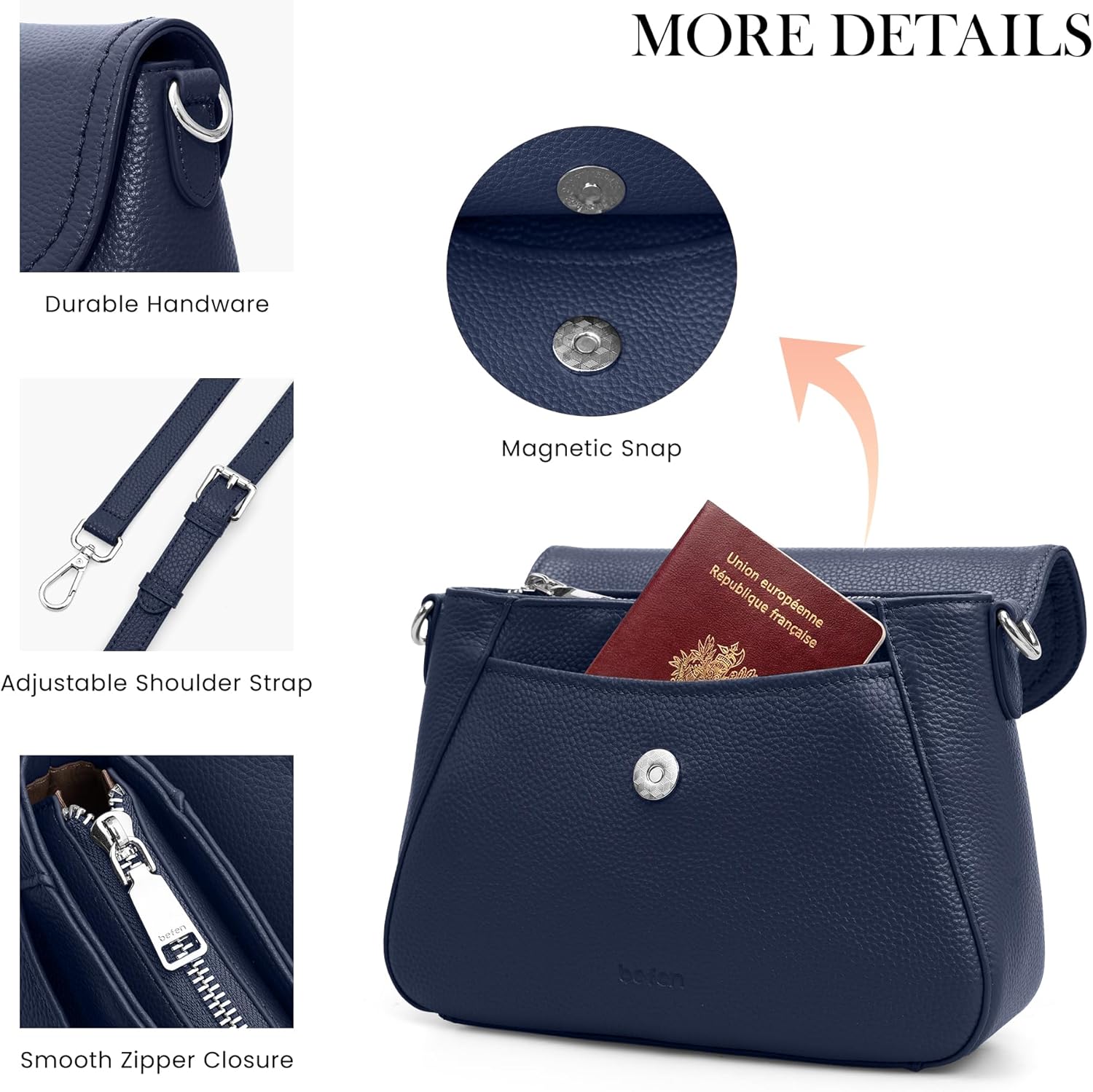 befen real leather-based crossbody baggage for girls journey rfid purses