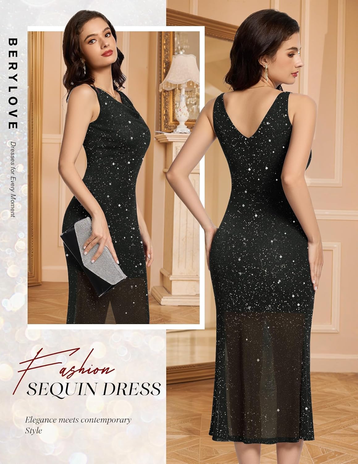 BeryLove Trend Sequin Formal Gown Cocktail Gown Night Robe Social gathering Gown
