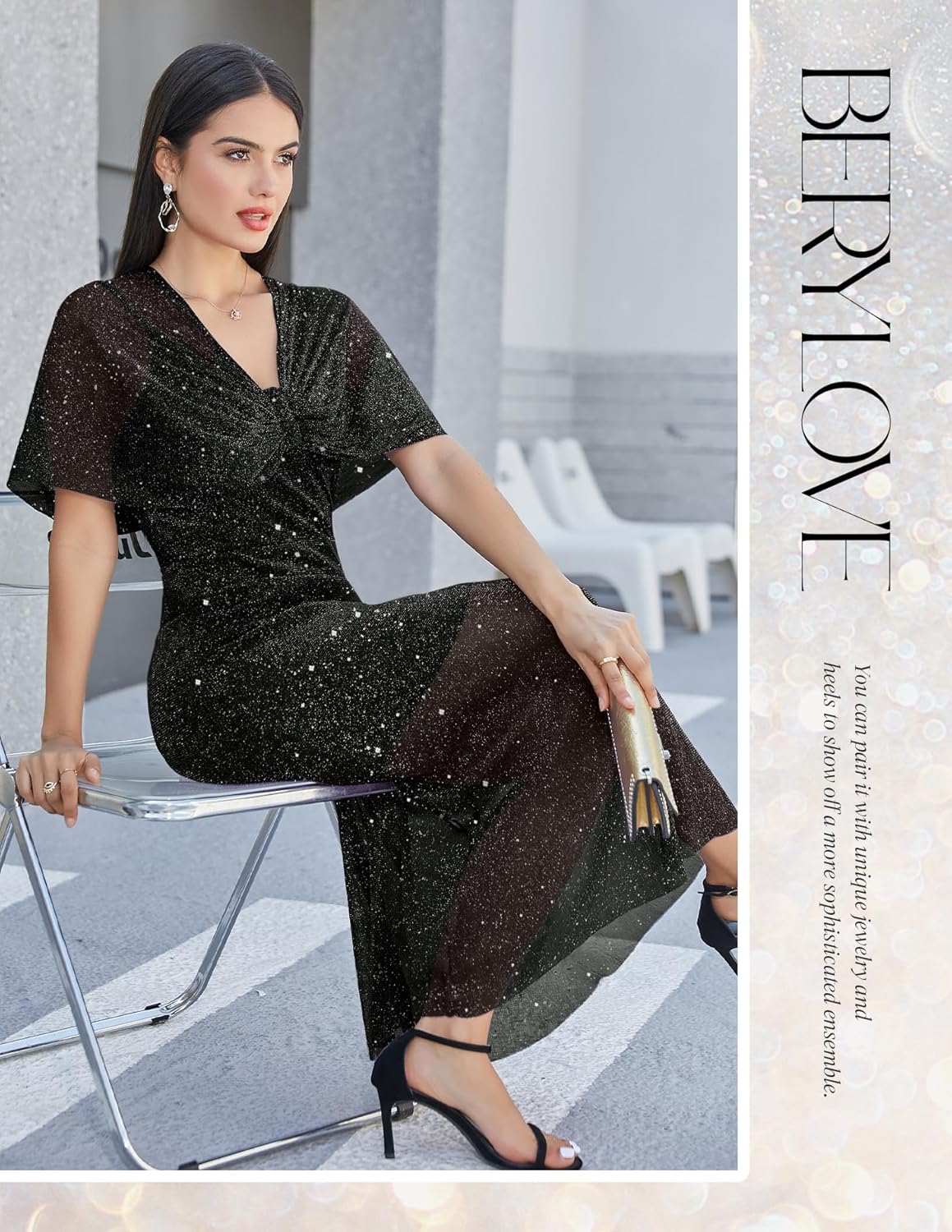 Be the first to review “BeryLove Sequin Evening Formal Gowns Elegant Spaghetti Strap Prom Dress Unique Shawl Design”