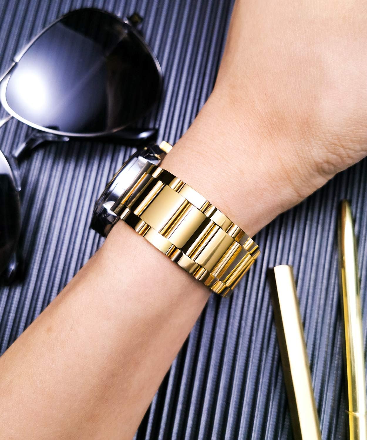 Prospects respect the watch band’s look, construct high quality, and match. They discover it seems to be nice with the watch case and is well-made with a very good end. The clasp appears safe and hasn’t come aside but after a full day of lively put on. Many shoppers say it seems like a high quality wrist band and is proof against scratching. Additionally they point out it matches properly, is straightforward to regulate the dimensions, and provides many measurement choices to select from. Prospects are happy with the convenience of set up and luxury, although opinions differ on the burden.