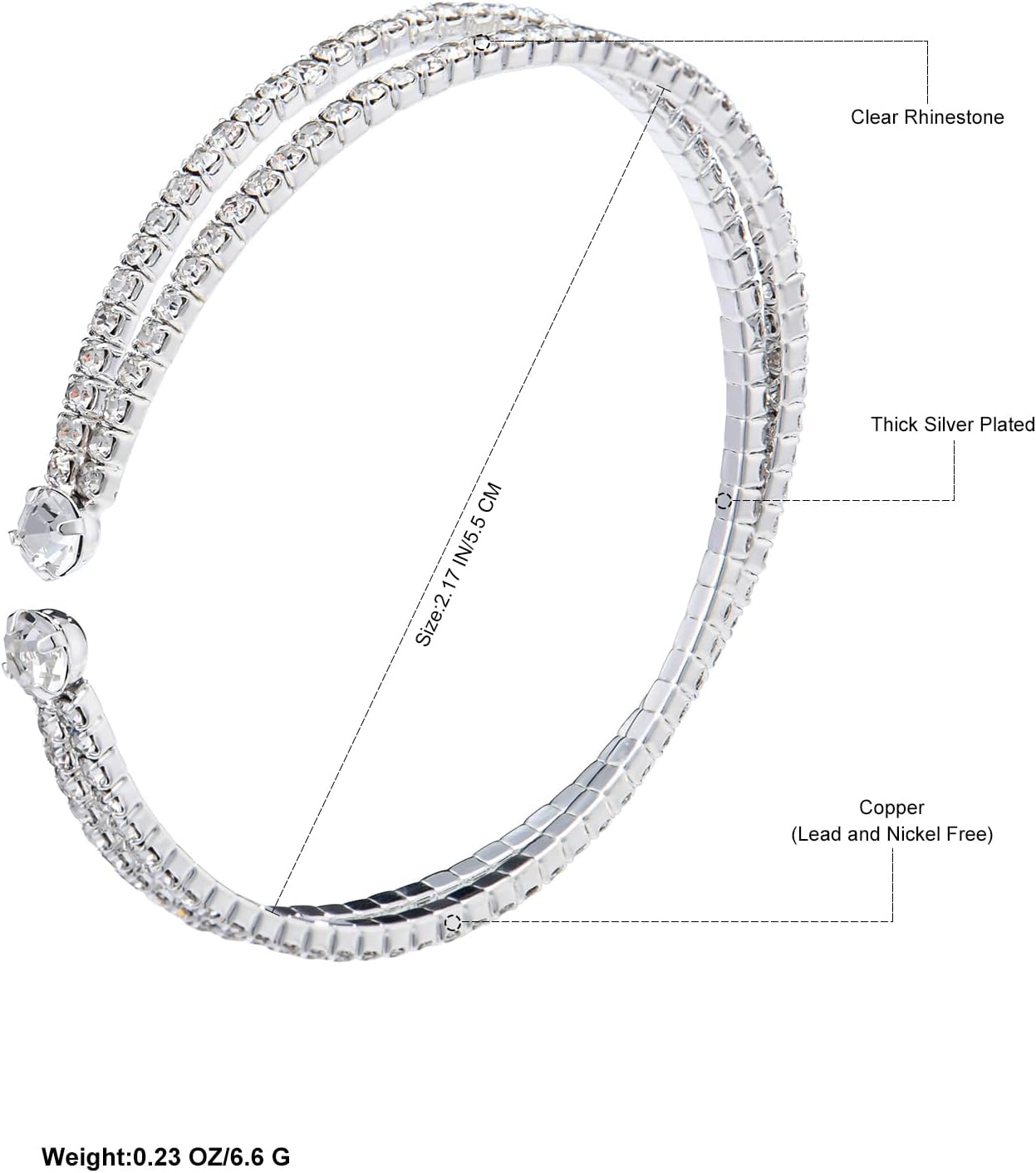 Silver Plated,Clear Rhinestone,Hypoallergenic Copper Base,Lead and Nickel Free.