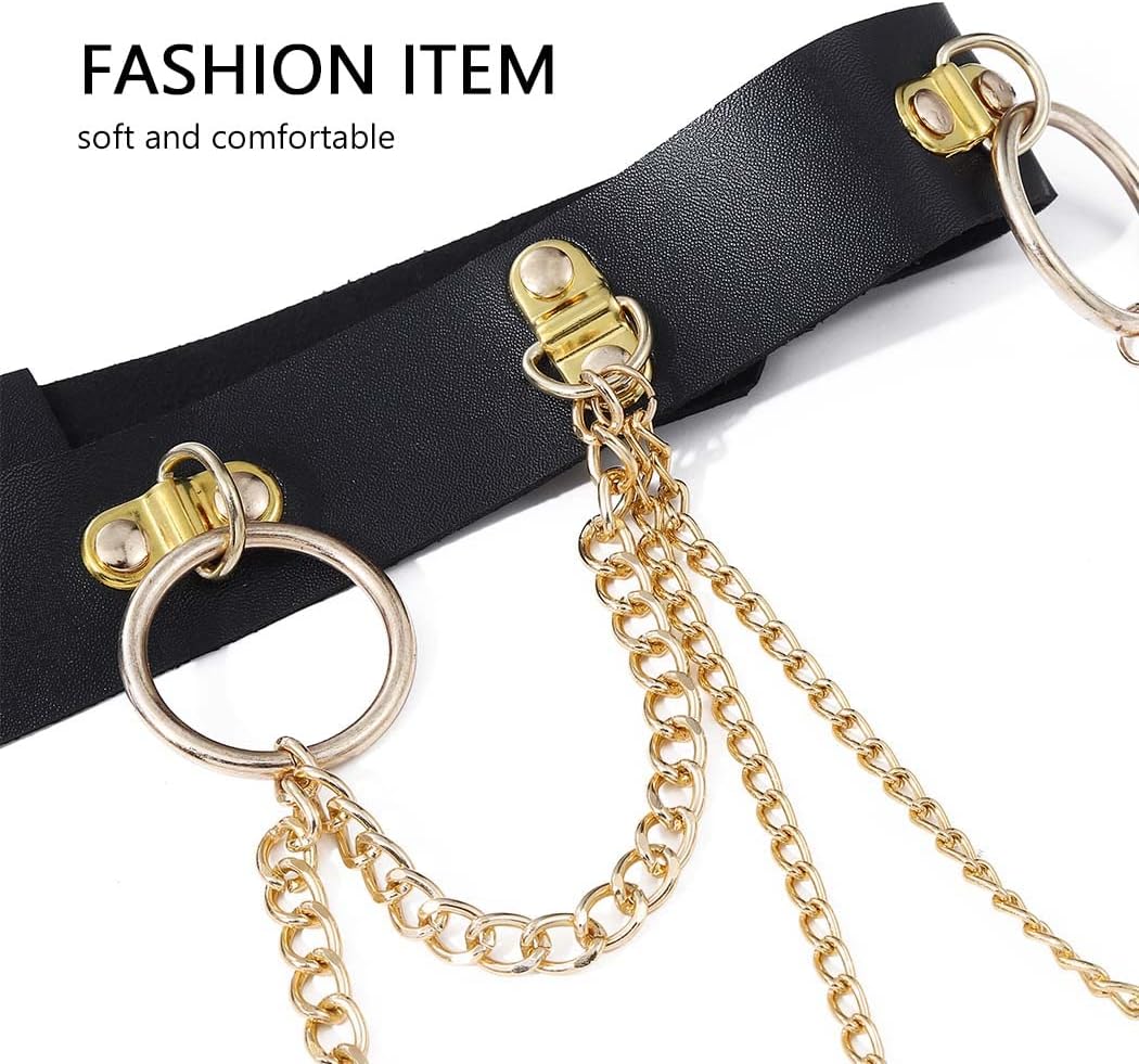 Bodiy Layered Waist Chain Belts Black Leather Circle Punk Gothic Belly Body Chain Rave Accessories Strap Festival Body Jewelry for Women and Girls (gold)