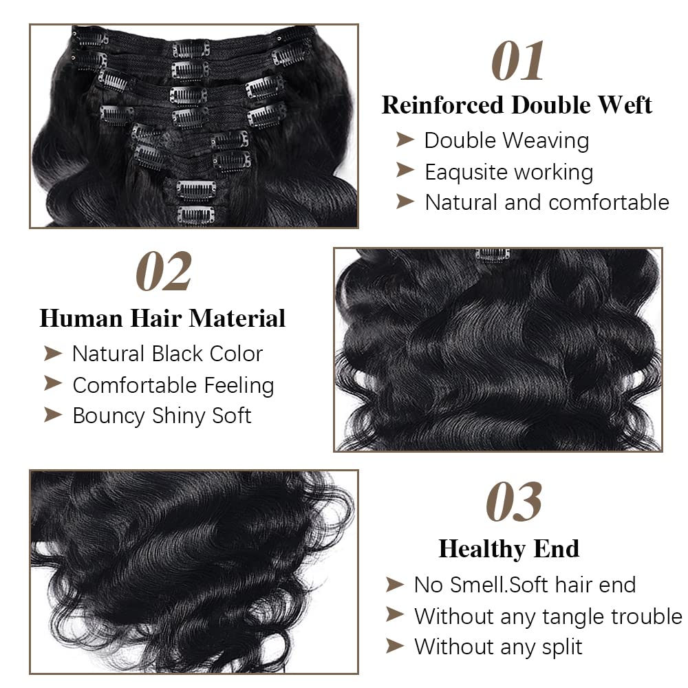 Body Wave Clip In Hair Extensions For Black Women 8Pcs Clip In Human Hair Extensions With 18 Clips Double Weft Natural Color 120g(16inch, Natural Black Body)