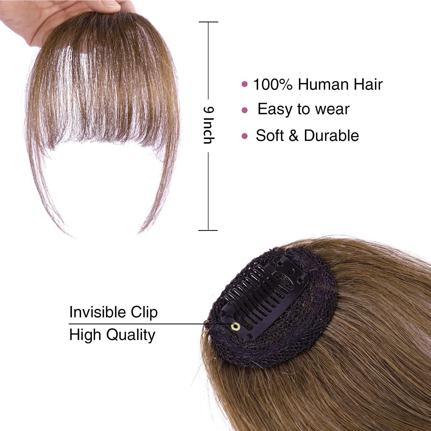 Hair Sort: 100% human hair bangs with temples, smooth and natural-looking