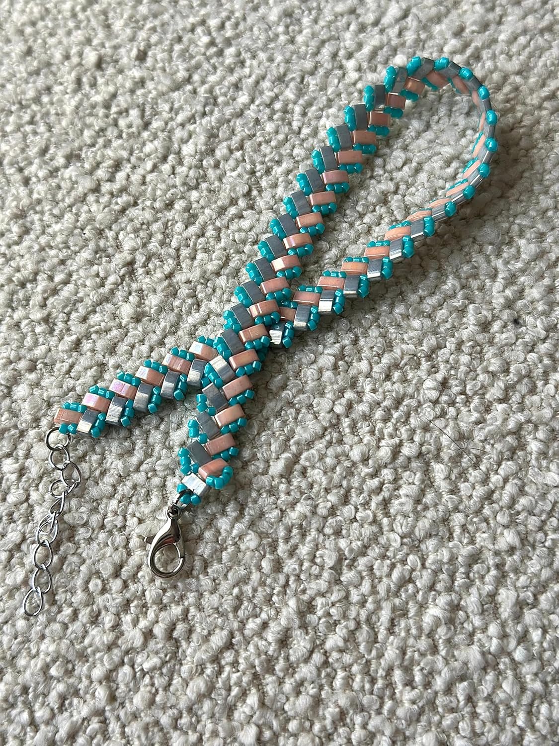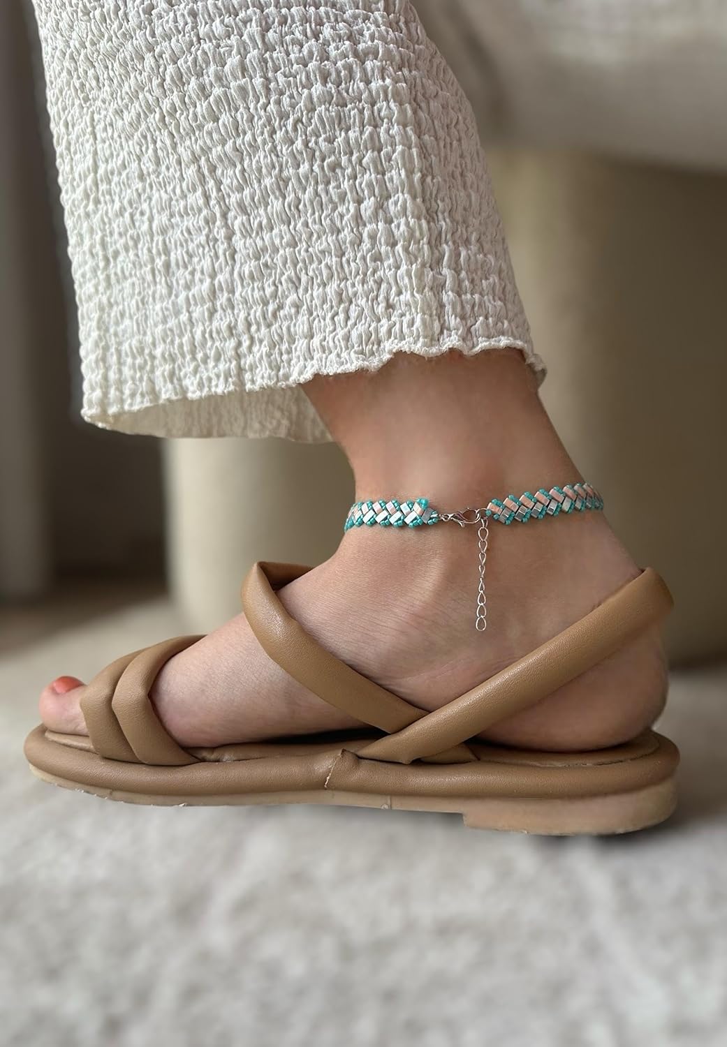 Improve your boho vibes with this gorgeous Tila anklet that includes charming turquoise, pink, and gray pastel tones. Handmade with love.