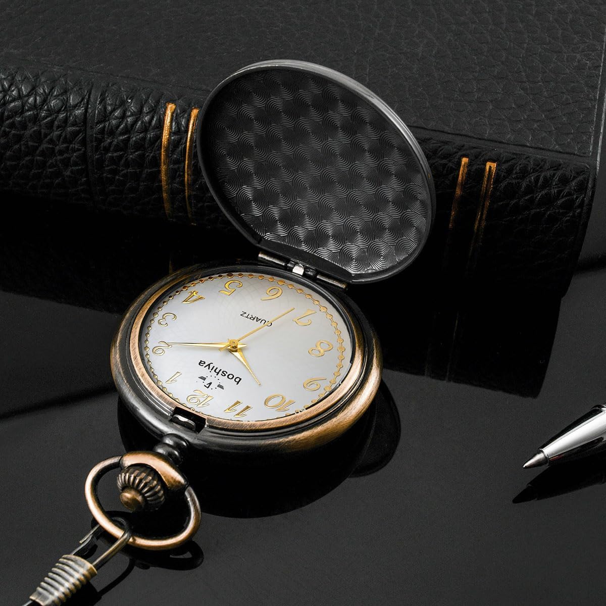 BOSHIYA Classic Smooth Vintage Quartz Pocket Watch, Arabic Numerals Scale Mens Womens Watch with Chain Christmas Graduation Birthday Gifts Fathers Day