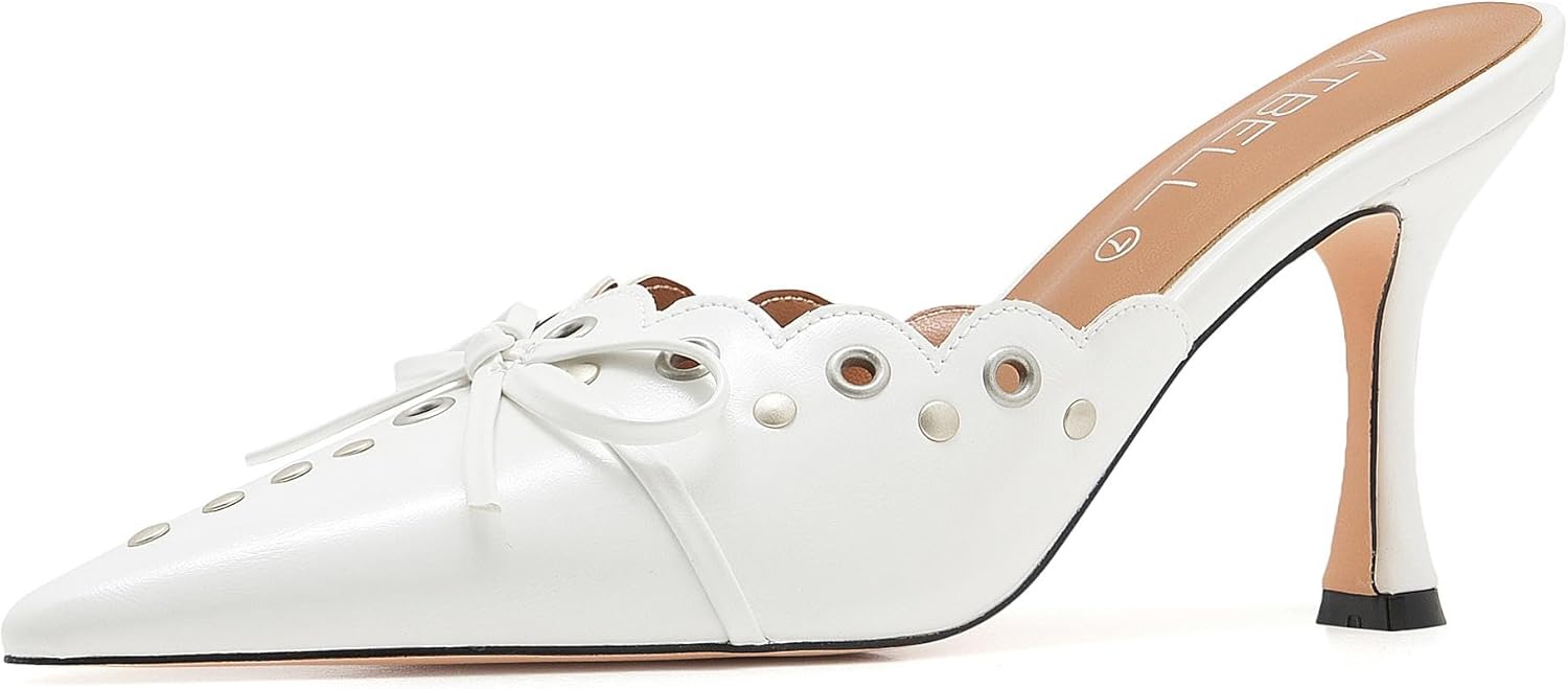 Bow Tie Heeled Mules for Women Pointy Studs Kitten Heels Dress Pumps Backless Stilettos…