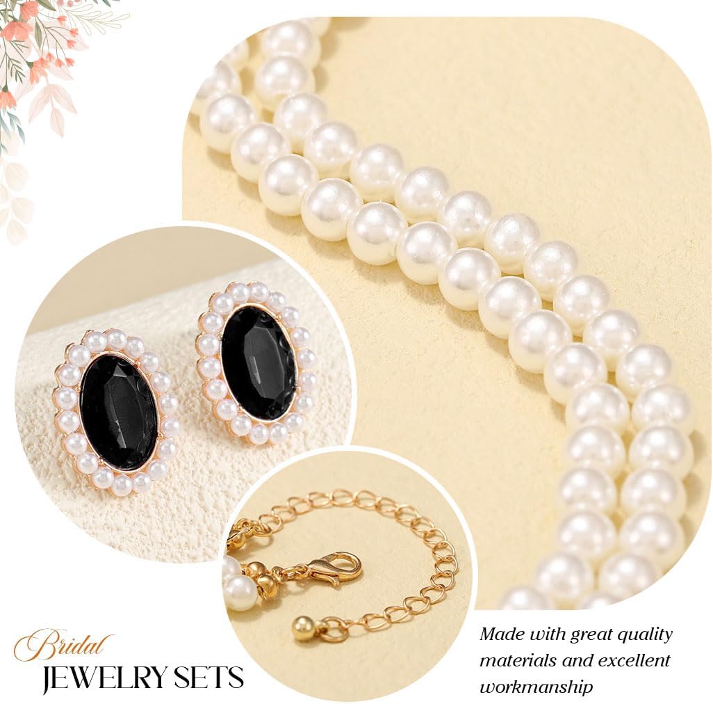 Brishow Pearl Necklace Jewelry Set Wedding Pearls Earrings Necklaces Set Bridal Crystal Bracelet Jewelry for Women (Pack of 3)