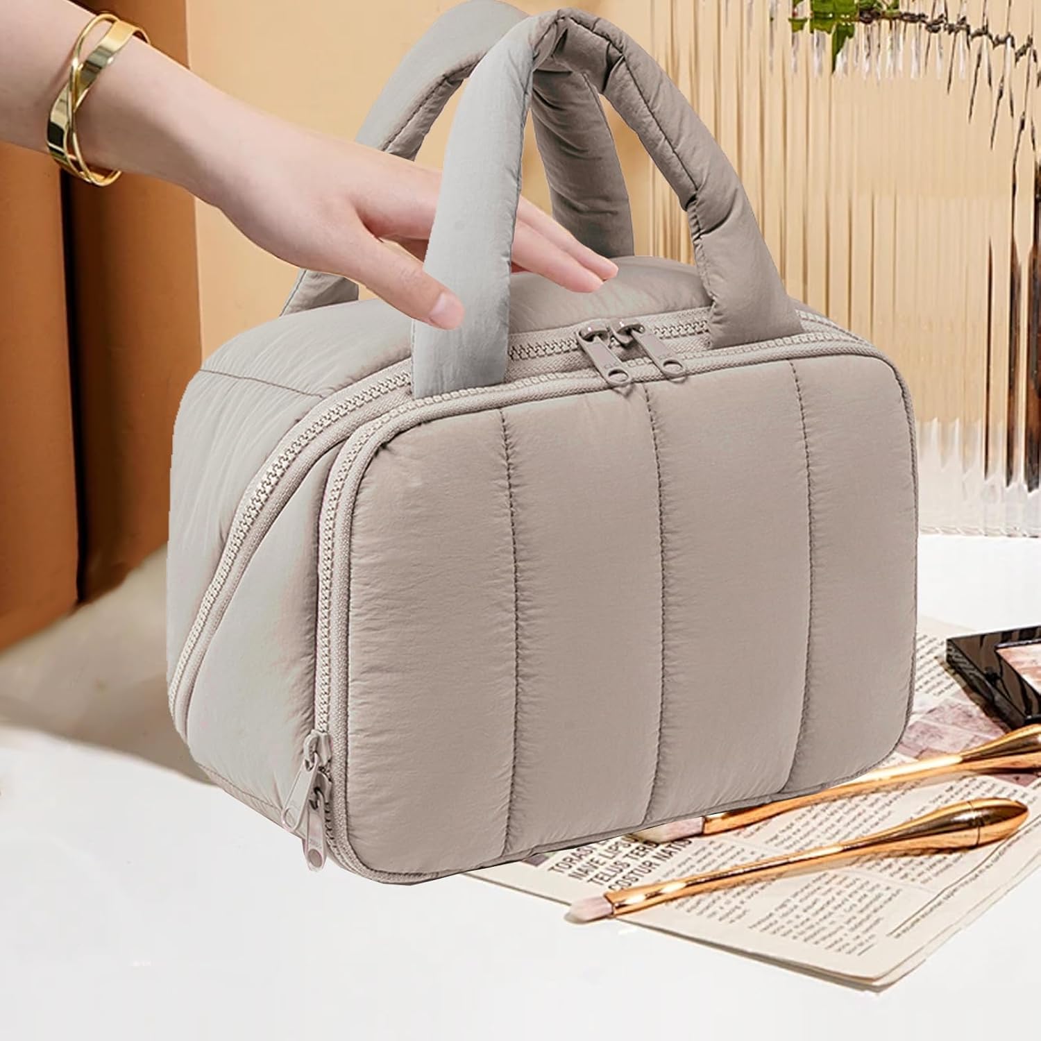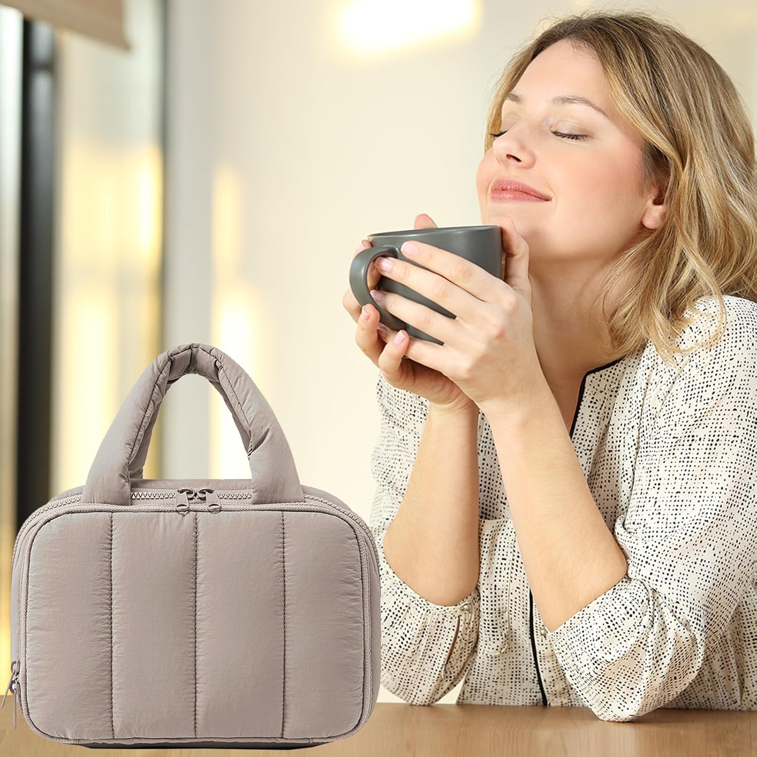 Light-weight and Mushy Supplies & Deal with: Particular qulited puffer design is tremendously style and light-weight. Made of sentimental and splendid puffer materials. This puffer journey toiletry organizer seems like cotton sweet, giving folks a relaxed and cozy environment. The prime quality cotton-filled deal with lets you carry it very comfortably and comfortable,trendy and sensible.
