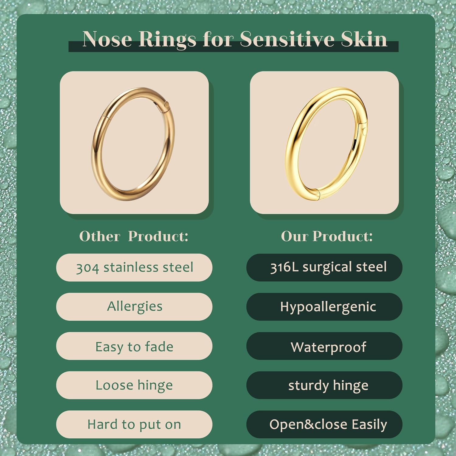 This straightforward and exquisite jewellery is crafted out of the best high quality 316L Surgical Metal. It’s no comprise nickel, lead or cobalt, which is what causes allergy to individuals with delicate pores and skin. By no means flip your pores and skin inexperienced.