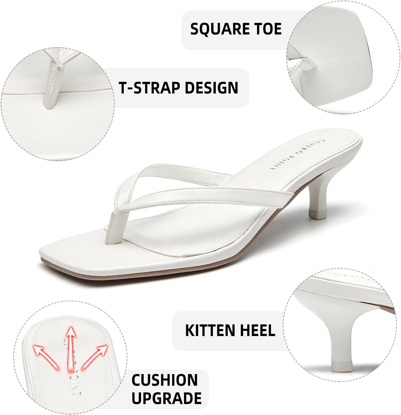 CentroPoint Women’s Kitten Heel Flip Flops Square Toe Slip on Fashion Dressy T-strap Thong Sandals