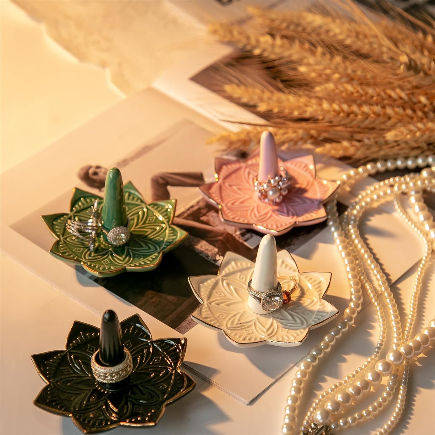 1. Distinctive Designed: This mandala ring holder is made of top of the range ceramic, and there’s handbook drawing golden traces on the sides which makes it distinctive and chic.