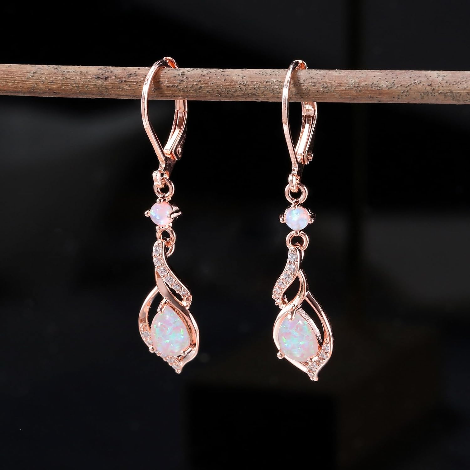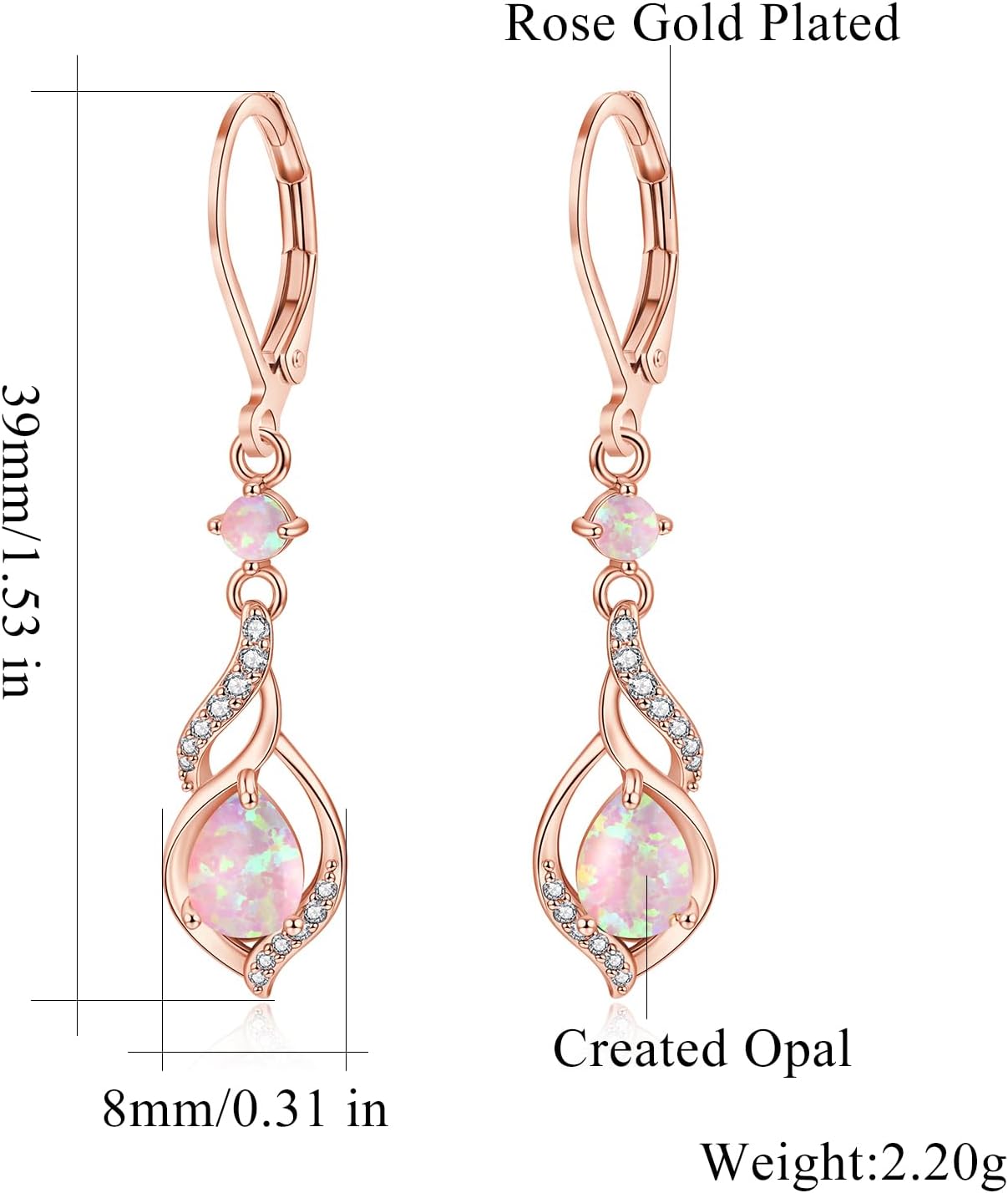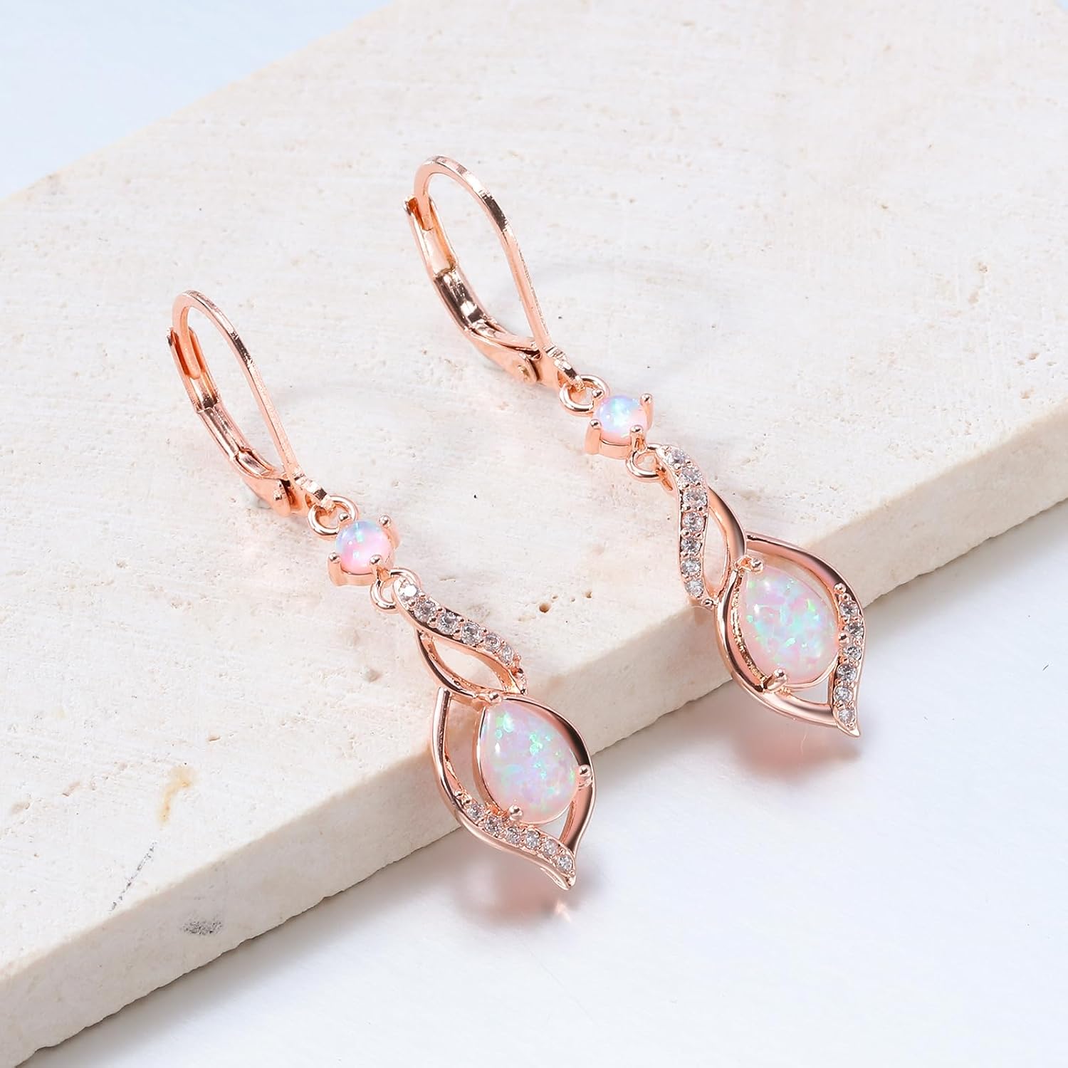Opal Dangle Drop Earrings for Girls: Teardrop leverback dangle earrings add fashion and class to your appears. Straightforward to match costume. Trend pendant earrings made of top quality 14K white gold and rose gols plated brass and black teardrop form opal, hypoallergenic for delicate ear