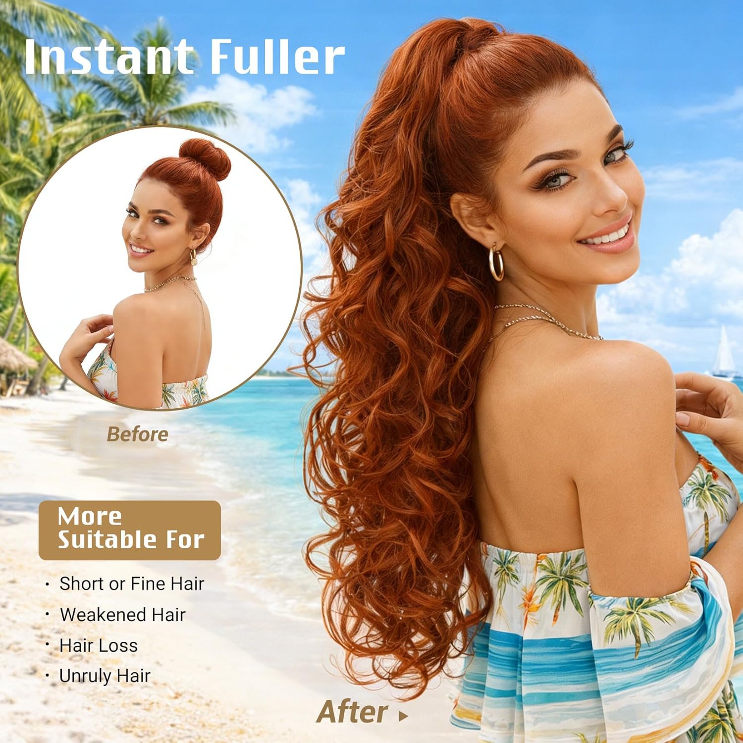 [ Quick styling] No want for hair extensions, ponytail wigs might be accomplished with one hand, curly styling is care-free, saving the morning Dressing time