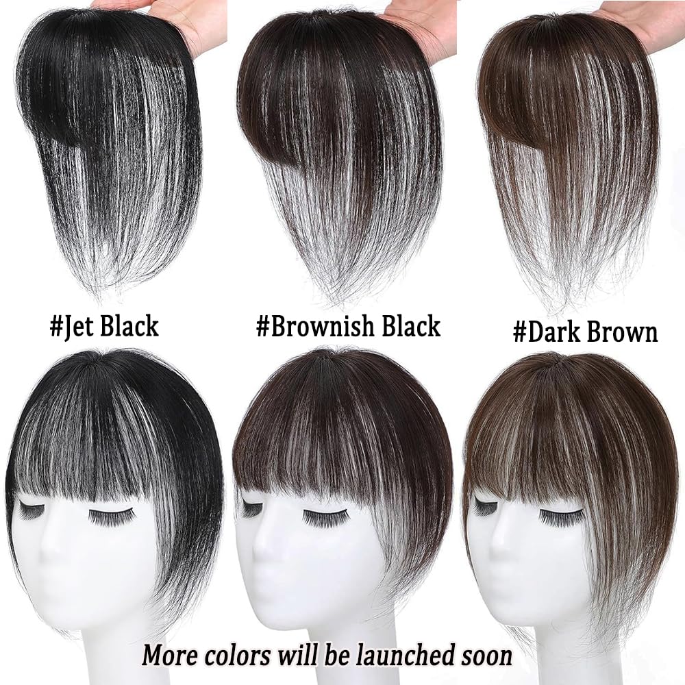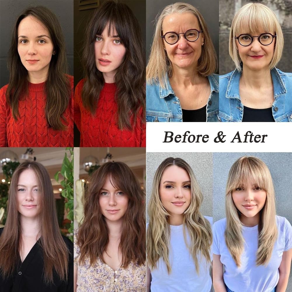 Premium Human Hair: The 3D Wispy Clip-on Bangs for Ladies are fabricated from virgin human hair, tangle-free. The hair topper with bangs, may be trimmed, curled, dyed, or restyled primarily based in your coiffure.