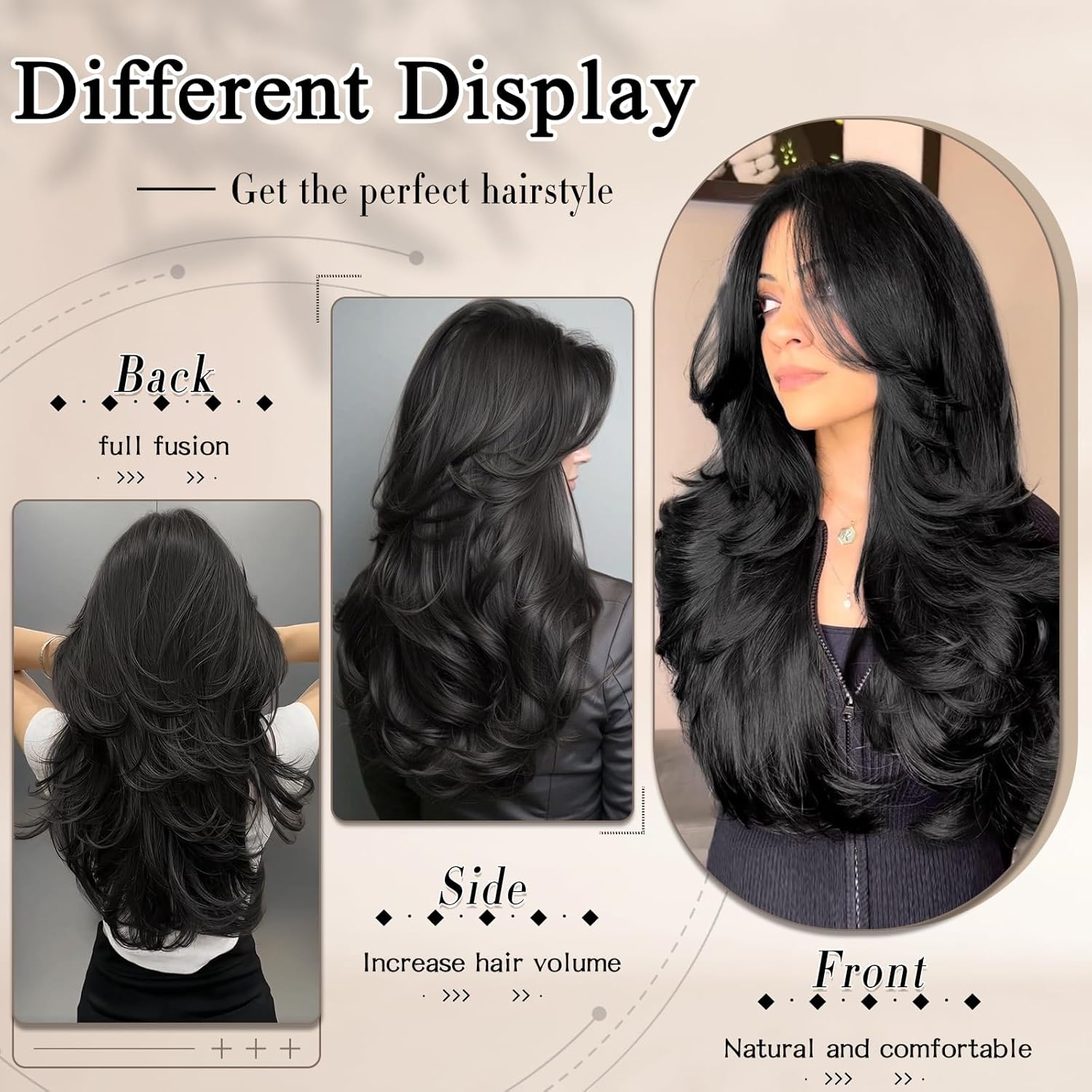 Clip in Hair Extensions Materials : FREEMEIGE black hair extensions merchandise made of warmth resistant artificial fiber.Tangle free,silky, tender,pure,lengthy service life with wide-toothed comb.This clip in hair extensions layered design,tender and clean, simple to comb and never simple to knot, appropriate for girls and ladies with much less hair,Put on it to make your hair look extra pure.