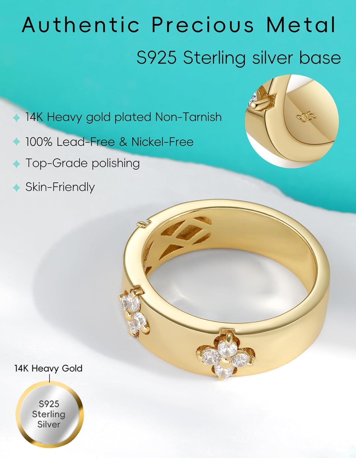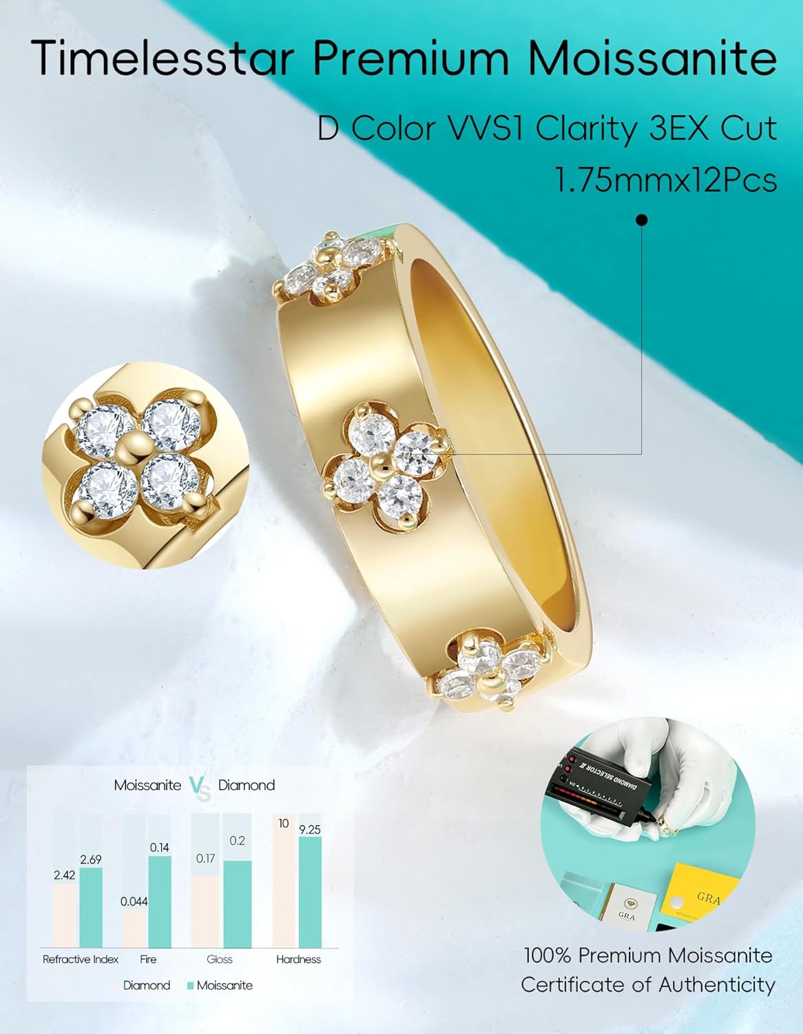 Clover Moissanite Rings for Women Gifts,Premium Moissanite(D Color VVS1 Clarity 3EX Cut), 925 Sterling Silver 14K Gold Plated Non Tarnish