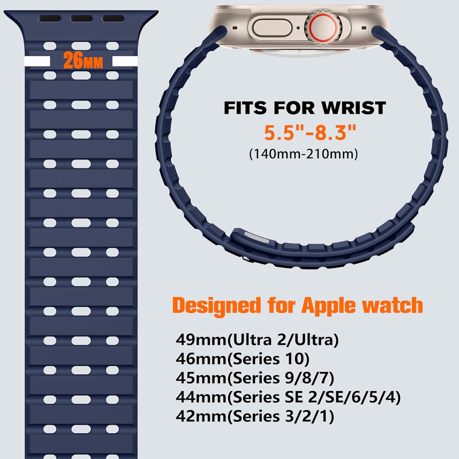 【Upgraded Silicone & Frosted Design】 Our 26mm huge magnetic watchband suitable with Apple Watch Extremely 2 band boasts high-quality silicone building, providing softness, sturdiness, and skin-friendliness. The floor is handled with a frosted texture and UV modification, making it extra dust-proof, enhancing contact sensitivity, and delivering a visually placing expertise. It’s the thinnest magnetic silicone band in the marketplace, which is extra light-weight and comfy