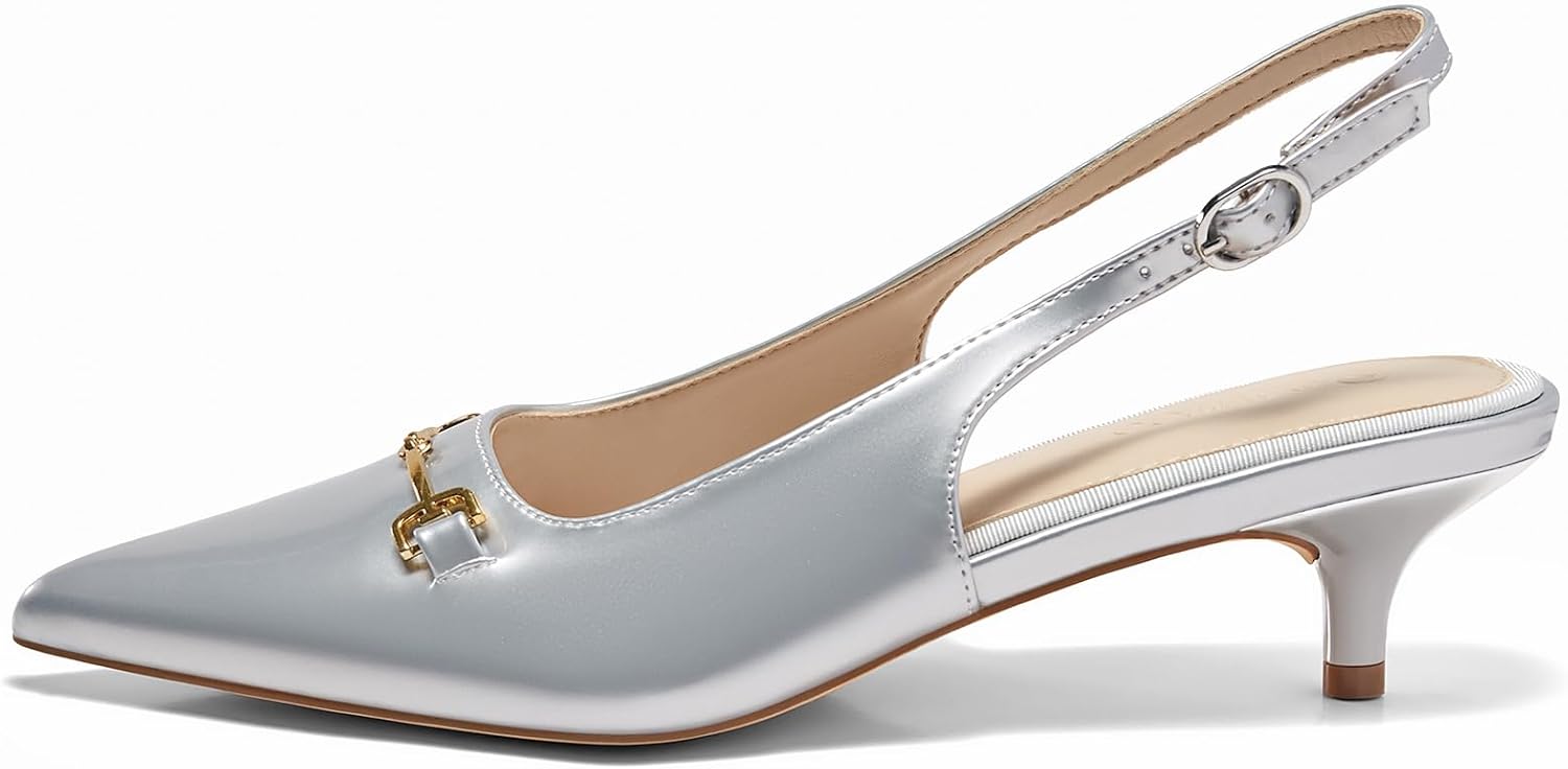 Womens Slingback Kitten Heels Low Heel Dress Shoes Closed Pointed Toe Metal Chain Office Work PumpsWomens Slingback Kitten Heels Low Heel Dress Shoes Closed Pointed Toe Metal Chain Office Work Pumps