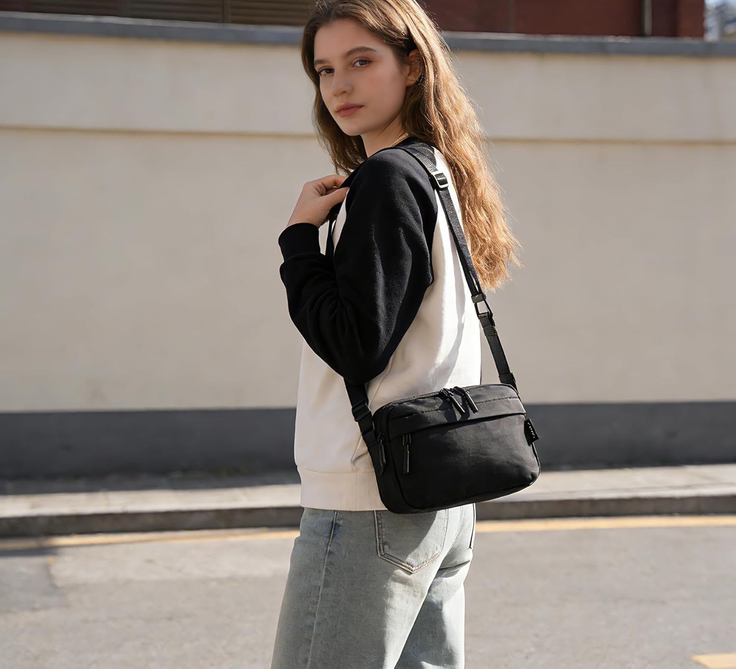 Cross Body Purse, Small Crossbody Bag for Women Men Adjustable Strap Multi-Pockets Two Way Zipper Water Repellent Lightweight